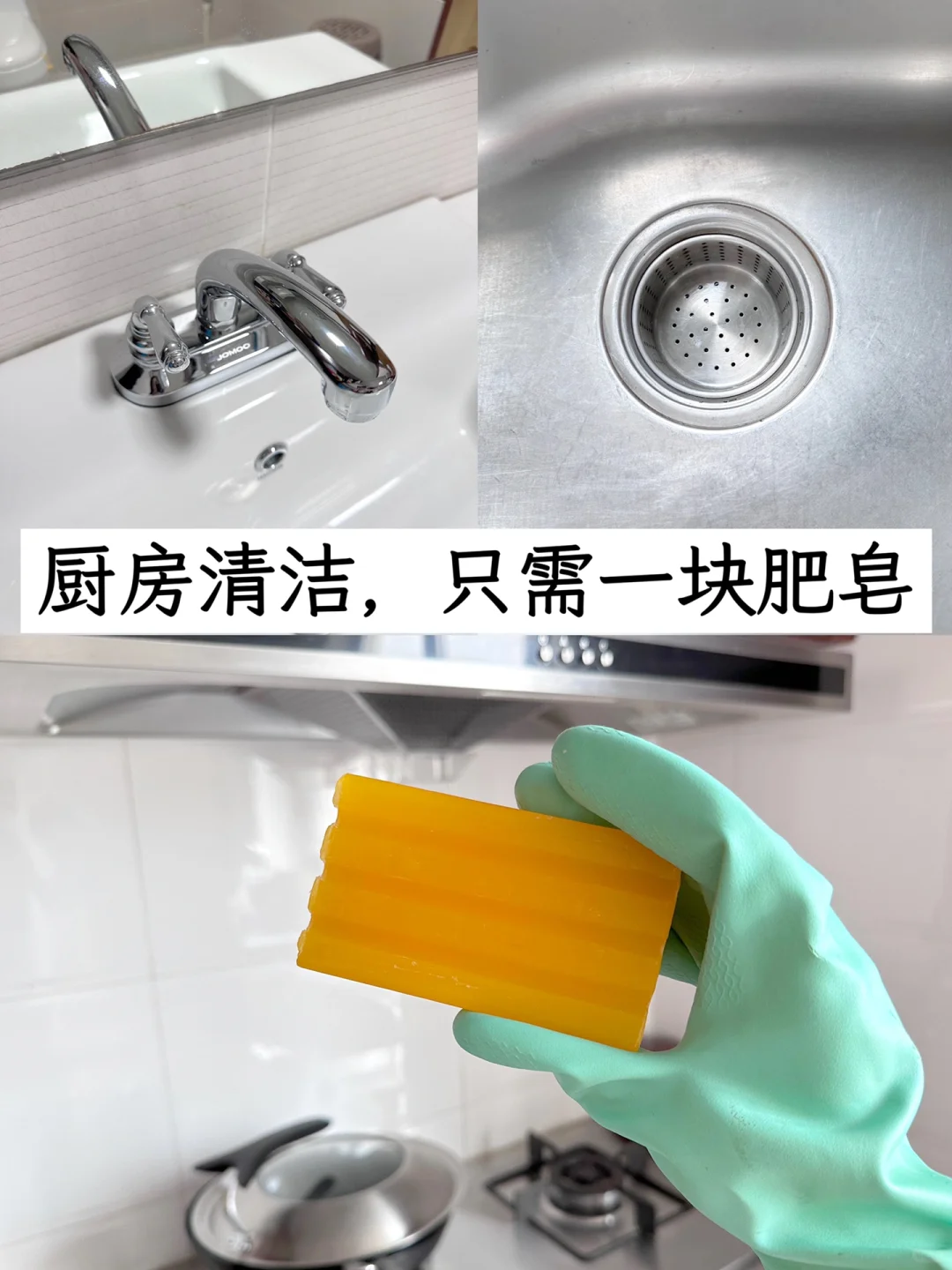 所以我们可以用肥皂,因为肥皂是碱性的,去污效果不会差,而且没有异味,还非常环保。