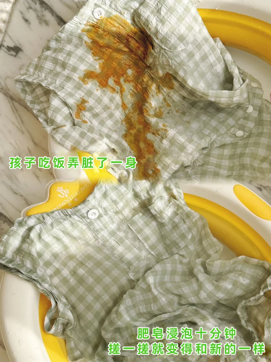 孩子比较淘气,因此他的衣服上经常会有难洗的果渍和污渍,直接放在洗衣机里根本就洗不掉,我们不妨用肥皂来洗。
