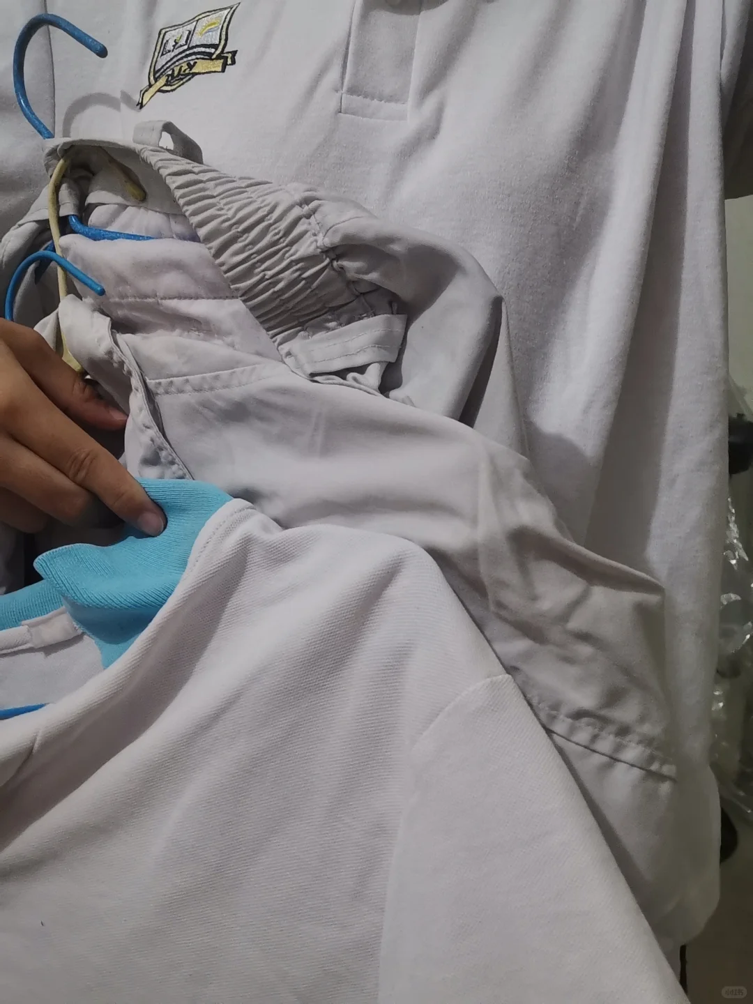 有时洗衣服,稍不留意将浅色衣服和深色衣服混在一起洗了,导致浅色衣服串色。原来以为这件衣服几乎就是报废了,没想到还能拿肥皂来拯救一下。