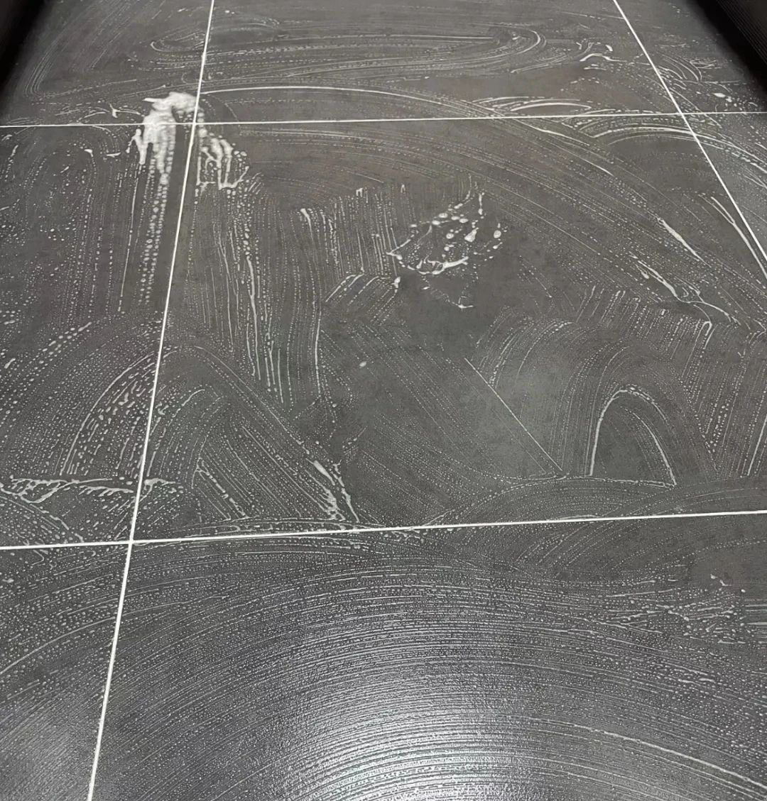 清洁卫生间地面,也可以用海绵沾取肥皂水,然后以打圈的形式清洁,最后用清水冲洗,再用刮水器刮一遍就好。