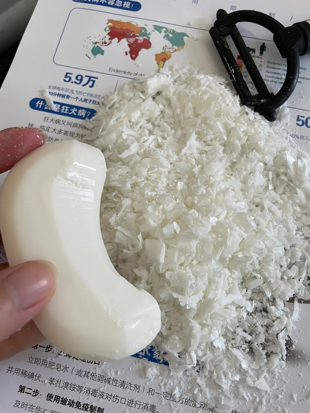 我们可以用热水浸泡肥皂,或者是刮一些肥皂碎,然后用热水化开。