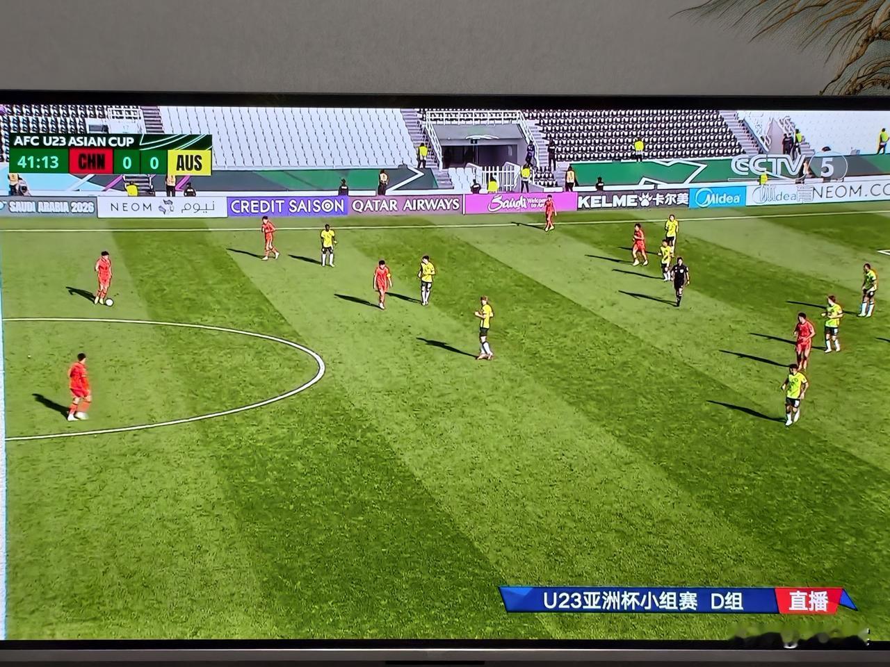 1:0,中国队半场领先澳大利亚队,恭喜中国队。比赛进行到第42分钟,中国队的后卫15号彭啸(来自山东泰山队),攻入本届赛事中国队的第一球。 总体来说,上半场中国队表现不错,给了澳大利亚队足够的压迫。尤其是拜合拉木的几次抢断、突破,给对手造成麻烦。 但从上半场看,也存在一些问题。 一是中场给对手留的空间太大,对手很轻易就可以突破中场,成为中国队的阵地防守战。 二是后卫的长传与几次在对手逼抢下的控球具有盲目性和危险性。 期待中国队的首胜!!