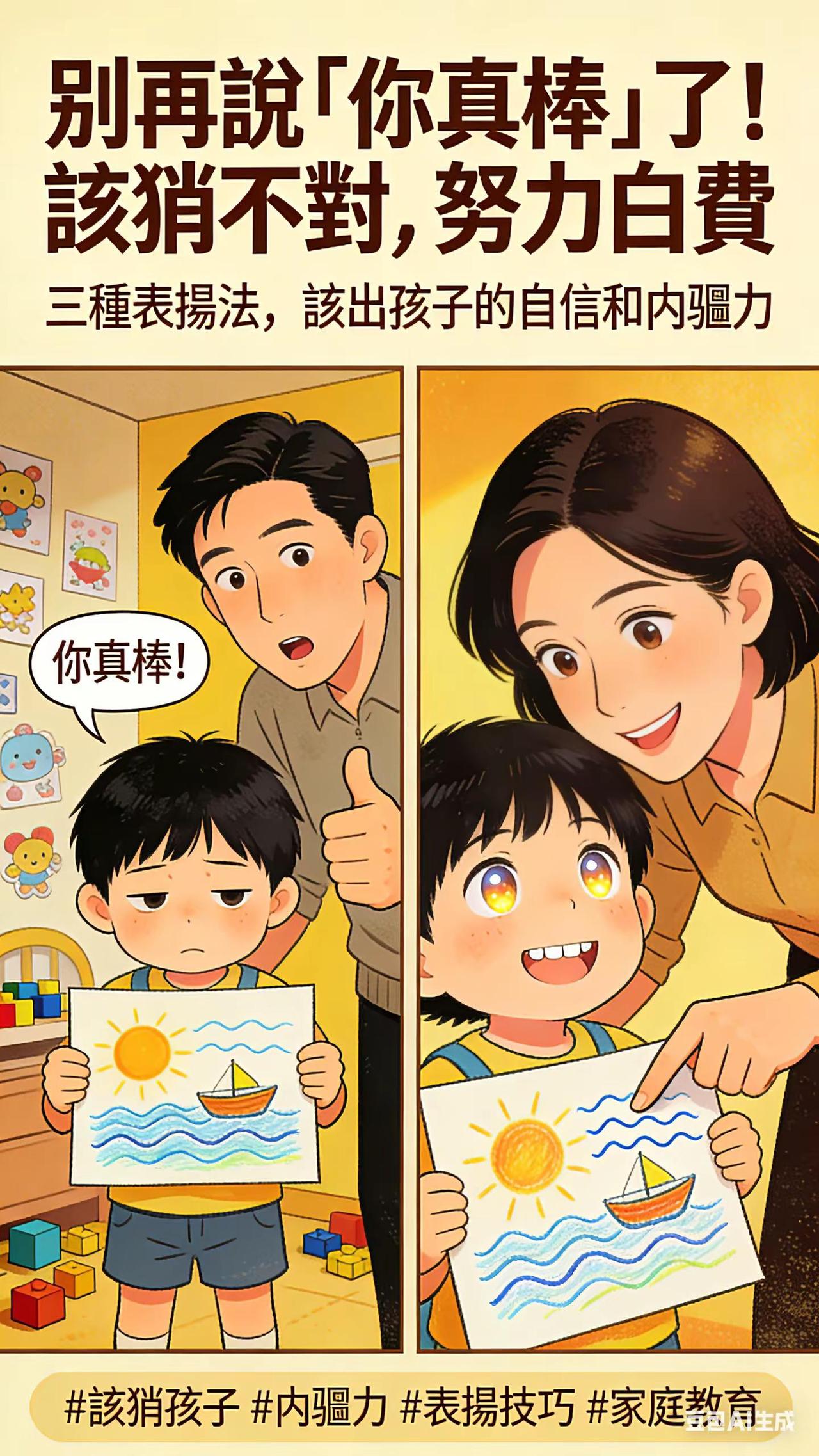 别再说“你真棒”了!夸奖不对,努力白费。三种表扬法,夸出孩子的自信和内驱力。标签:夸奖孩子 内驱力 表扬技巧 家庭教育 亲子教育 育儿经验分享 育儿新思维