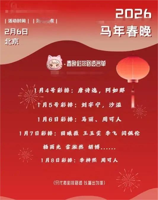 看完2026春晚彩排名单,我悬着的心放下了,又提起来了! 放下是因为,那些熟悉的“老面孔”又齐刷刷地回来了。从沈腾、马丽到岳云鹏、孙涛,你一看到他们,就知道“年”确实近了。提起来也是因为这个“老”——今年春晚的主题是“骐骥驰骋势不可挡”,可舞台上跑的,怎么好多还是那几匹驾轻就熟的老马? 岳云鹏将第九次站上那个舞台。可去年他那段频频笑场忘词、满是老梗的相声,尴尬得让人想按快进。大家吐槽“去年的剩饭还没吃够吗”,吐槽的不是他这个人,而是那种显而易见的“不用心”。孙涛也一样,节目公式多年不变,开头吵架拌嘴,中间喊句口号,结尾必定包饺子升华。观众闭着眼都能接上词。 我们不是不爱“老面孔”。我们只是太想念“老艺术家”。 这两者有本质区别。老艺术家如陈佩斯、赵本山,他们的《主角与配角》《卖拐》,是从生活的泥土里长出来的幽默,一句台词能让你笑一年、记一辈子。他们的“老”,是技艺精湛的老道。而有些“老面孔”的“老”,只是资历上的老,是套路化的老调重弹。前者创造经典,后者消耗情怀。 所以,大家真正怀念的,是冯巩那句情真意切的“我想死你们啦”,而不是流程化的“给大家拜年了”。是作品里滚烫的生活气息,而不是正确却冰冷的主题口号。 好在今年春晚也有新尝试,比如邀请普通人当“春晚体验官”。这方向是对的。春晚的根,终究要扎回最普通的人间烟火里。 说到底,观众心里有杆秤。我们从不拒绝真诚的熟脸,但我们更期待新鲜的、用心的惊喜。毕竟,除夕夜的这一晚,我们守候的不仅仅是一台晚会,更是一份对“新”的期盼,对“好”的共鸣。 这份刚曝光的名单里,你最盼着谁出场,又最怕看到谁“炒冷饭”?评论区聊聊,看看有多少人和你“同病相怜”。