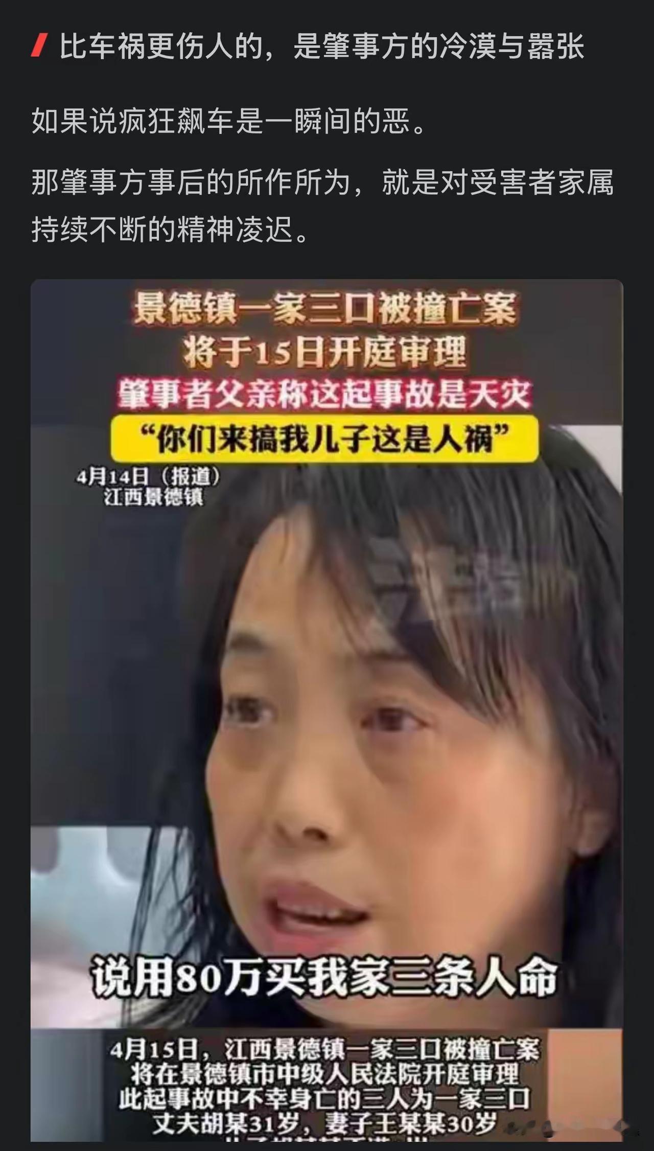 这是一起以其他方式危害公共安全的犯罪,是故意犯罪,对三人的死亡,持的是放任态度,既间接故意,造成严重后果的间接故意犯罪,如果最高刑是死刑,也应判处死刑立即执行,因为刑法最基本的原则之一就是罪刑相适应,简单地说就是轻罪不能重罚,同样重罪也不能轻罚,景德镇中级法院的判决,显然违反了刑法这一基本原则