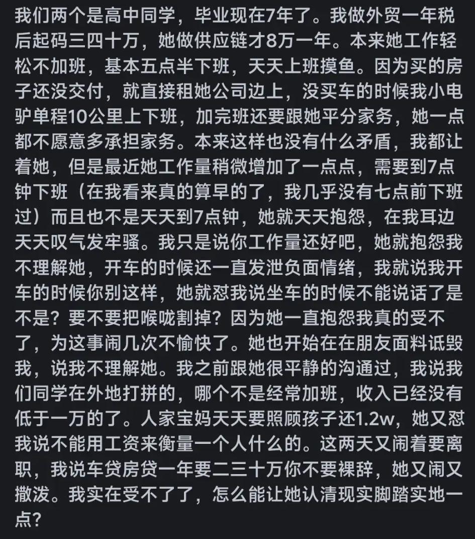 【我年薪40万被8万老婆天天骂废物!得知真相我傻了…】 昨天发工资,我看了眼银行卡:又到账3万多。老婆突然冷笑:“挣这点钱,还不如我去摆地摊!” 我懵了——她月薪六千,我月入三四万,怎么在她眼里,我反而成了“高攀”的那个?😤 她经典语录包括: ❌“你也就是运气好进了大公司” ❌“我要是当年学理科,现在早当总监了” ❌“别以为赚得多就了不起,我闺蜜老公都开保时捷了!” 最绝的是上周——她非要投资闺蜜的“美容帝国”,说稳赚百万。我一查:那公司注册资金才5万,主打产品是三无面膜…🙃 热评神吐槽: 🔥“她不是嫌你穷,是嫌自己穷还不承认!” 🔥“有些人自己躺平,却怪别人跑太快” 🔥“这波属于:实力配不上野心,演技配不上眼泪” (金句暴击💥) 婚姻里最可怕的,不是一个人挣得少,而是心比天高、命比纸薄,还非要拽着另一半一起做梦! 说白了——你可以嫌我赚得不够多,但不能自己躺坑里还骂我站着挡了光啊!💔 夫妻吵架 贫富差距 婚姻真相 职场现实 扎心语录 (流量密码🔑) 投票:你能接受伴侣能力普通但心气高吗? 👉能,梦想总要有的 👉不能,务实最重要 (评论区选一下!👇)