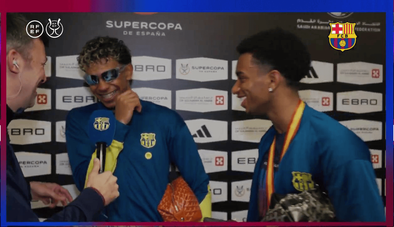 虎扑01月12日讯在西超杯决赛巴萨3-2战胜皇马的比赛后,巴萨球员亚马尔与巴尔德接受了采访。