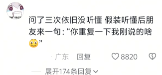 问了三次依旧没听懂 假装听懂后朋友来一句:"你重复一下我刚说的啥