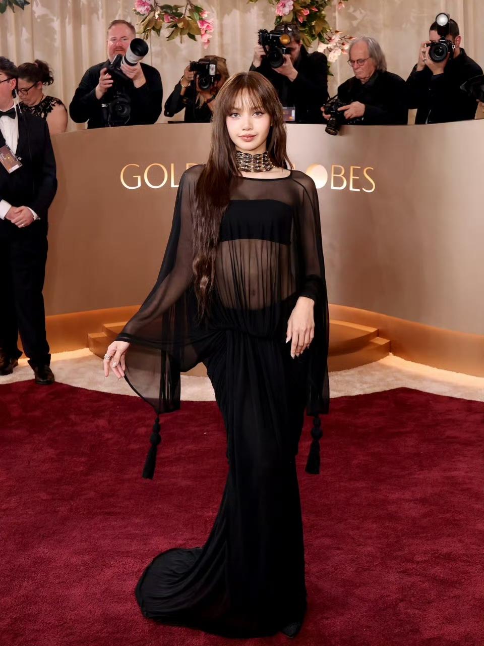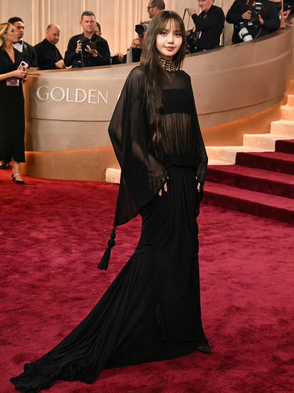 Lisa穿件黑裙子,把金球奖给震了! 2026年1月12日,北京时间的凌晨,很多人大概是被一张照片刷醒的。Lisa,就是那个Lisa,穿着Jacquemus的定制黑纱长裙,走上了金球奖的红毯。 这可不是普通的亮相,她是去颁奖的。就这么着,她成了第一个站在金球奖台上当颁奖嘉宾的K-POP艺人,也是泰国头一位。 裙子是真好看,法国牌子专门给她做的,黑纱飘飘,上面还绣着花,高开叉,走路带风。珠宝更绝,宝格丽还没公开的新系列,她第一个戴上。可你要觉得这只是一次漂亮的红毯秀,那就想简单了。 外媒的镜头多毒啊,G社的生图直接怼脸拍,顶光从脑门打下来,那叫一个考验骨相。结果呢,全网讨论的不是“精修和生图差多少”,而是“这生图怎么比精修还有味道”。 有人说像雕塑,有人说这状态绝了。当然,也有小声嘀咕的,觉得黑纱会不会太暗了。这正常,哪有一次亮相能让所有人闭嘴夸的,有讨论才有意思。 但最核心的,不是裙子,甚至不是脸。是她凭什么站上去。人家是带着作品来的,《白莲花度假村》那剧入围了最佳剧情类,她是剧里的演员。就这么顺理成章。 这下,之前那些关于“只有流量”的议论,声音可以小点了。而且你数数,奥斯卡表演过,艾美奖去过,现在金球奖颁奖,好莱坞三大顶流盛会,她齐了。泰国大使馆直接发文,说这是“国家骄傲”,一点没夸张。 所以你看,这哪是一次简单的换装走红毯。这是一个信号,一个亚洲艺人,靠着一步步从偶像转型演员,拿着实打实的作品邀请函,真正推开了好莱坞核心圈子大门的信号。 漂亮是入场券,但能留在桌上,甚至起身发言,靠的永远是桌下的功夫。Lisa这次,算是把功夫,亮给大家看了