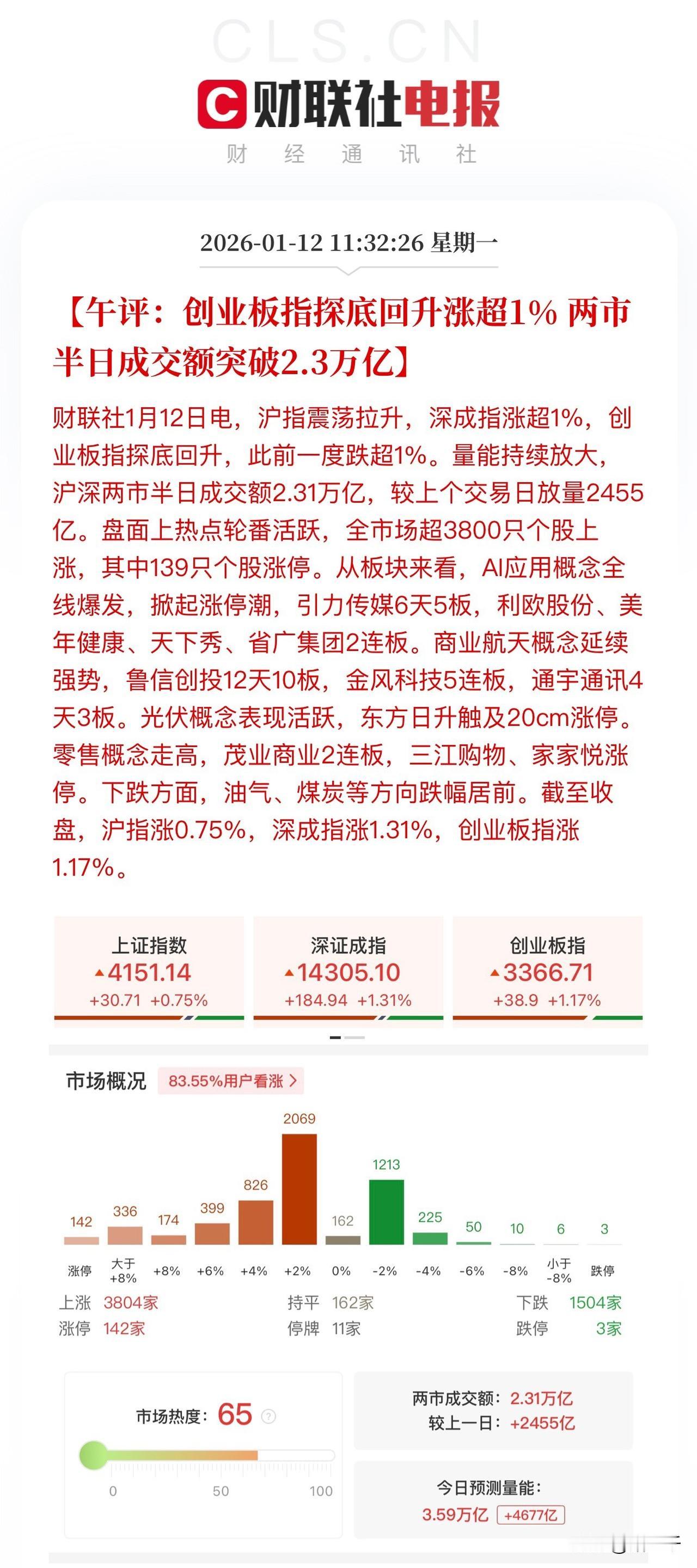 午评,涨疯了! 沪深两市半日成交达2.3万亿, 卫星ETF涨停; 端侧Ai应用接力商业航天, 昆仑万维20cm两连板, 因赛集团、中文在线、易点天下卷土重来; 光伏利空落地变利好, 捷佳伟创创阶段新高。 上午涨停家数超150家! 当然也有失意的: CPO、PCB这些老登股领跌, 电池股、创新药一点面子不给, 满心欢喜的存储芯片几乎没有什么动静, 只有兆易创新演绎行业龙头本色! …