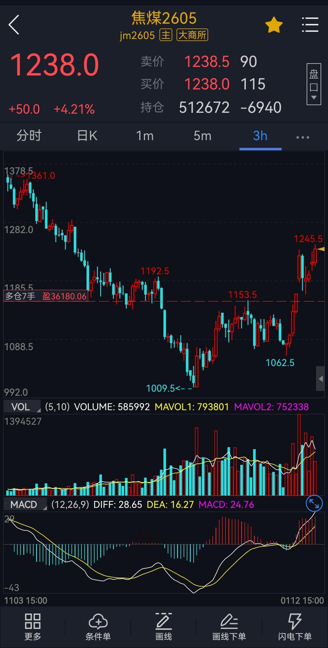 焦煤: 焦煤主力2605合约,调整之后再次顺利拉升,站稳1200点之上。当前在1200点上方仍然是偏强结构,上方压力集中区1280/1300一线。 近期宏观与产业层面释放的积极信号,提振了市场情绪,铁水复产、以及下游节前刚需补库的需求季节性回升均为煤价提供向上动力,因此短期盘面走势偏强。