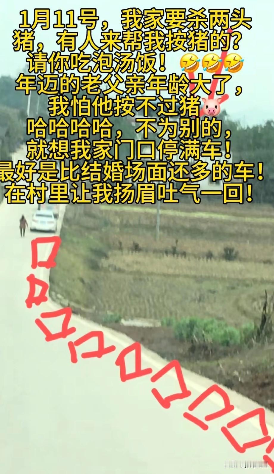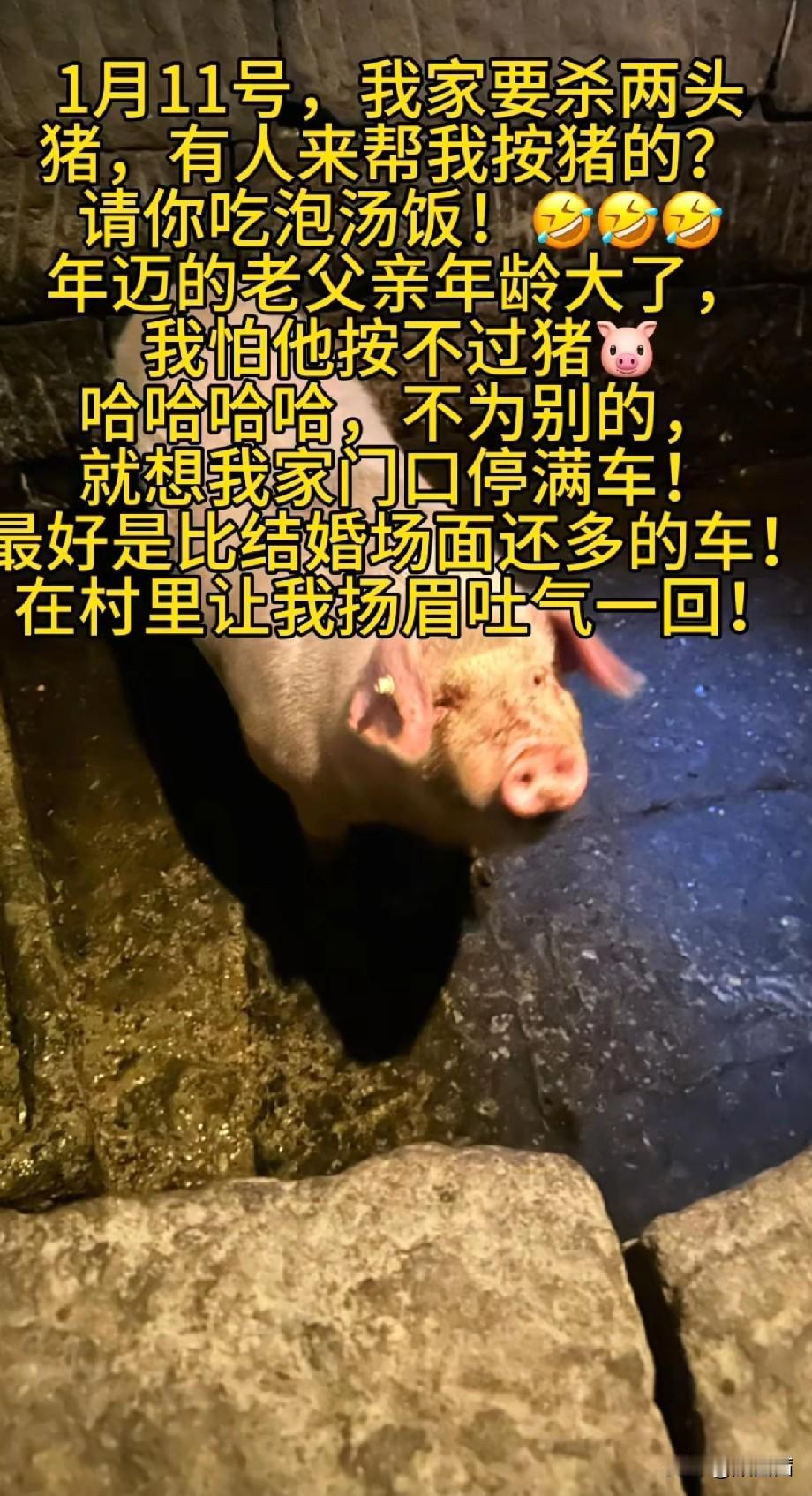 重庆合川小姐姐彻底火了!喊人帮忙杀猪,竟引来上百辆车堵满村,文旅局都连夜出动了 谁能想到,喊人帮忙杀猪这件事,能直接冲上热搜! 重庆合川的呆呆小姐姐,本来就是想帮老父亲找几个帮手杀猪,承诺管一顿热乎的泡汤饭,最大的心愿不过是家门口停满车,在村里长长脸。 结果视频一发,彻底失控了!7个500人的群一夜爆满,直播间直接涌进8万人,吓得小姐姐连夜跑到公安局备案。 更离谱的是,距离杀猪还有整整一天,1月10号下午,她家门前的公路就堵得水泄不通,上百辆车从村口排到村委,远处山路上的车灯蜿蜒闪烁,不知道的还以为这儿要办乡村音乐节! 小姐姐看着乌泱泱的人群,当场慌了神,生怕饭不够吃、招呼不周。 但比她更急的,是合川文旅局!自己辛辛苦策划半年的文旅推广,热度居然干不过两头待宰的年猪?这泼天的流量可不能浪费!工作人员连夜就位,直接接管后勤保障,硬是把一场民间求助,升级成了官方主办的乡村嘉年华。 原本计划杀两头猪,最后直接扩充到七头!杀猪的、做饭的、烤火唠嗑的,现场井然有序,饭后还安排了非遗打铁花表演,热闹得比过年还带劲。 呆呆小姐姐这下是真的在村里扬眉吐气了! 话说回来,那些驱车几百公里赶来的人,真的是为了一口泡汤饭吗? 其实大家奔赴的,是城市化进程里渐渐失落的年味,按住的不是猪,是记忆里那渐行渐远的乡村仪式感啊!