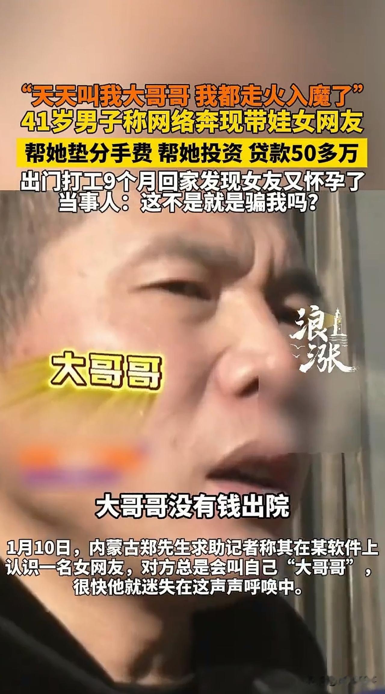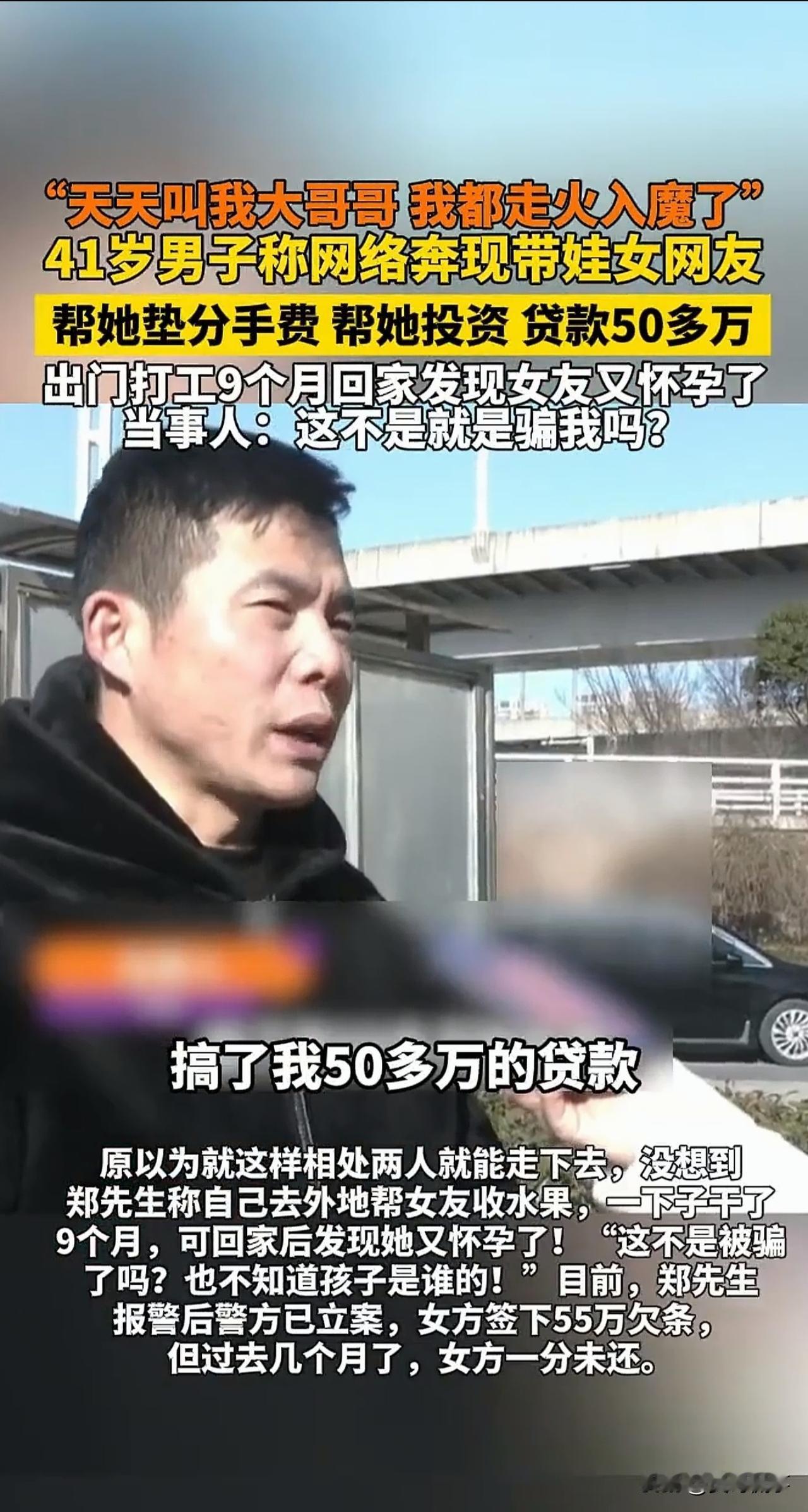 内蒙古,一41岁男子在网上网恋,被女友的一声声“哥哥”喊得迷失了自我。此后,男子对女友有求必应,贷款50万元,给女友竟陆陆续续花了60万。有一次,男子外出9个月后,回来时发现女友已怀孕,男子瞬间傻了眼。 家住内蒙古的郑先生,今年已经41岁了,这个年龄在农村早已成家立业,孩子都很大了。 可郑先生却迟迟没有结婚,父母看在眼里,急在心里。 为了让儿子早日成家,老两口托亲戚、找朋友,没少给他安排相亲,可要么是郑先生没感觉,要么是对方觉得他性子太闷,几次下来,这事也就不了了之。 眼看着身边的同龄人都过上了安稳日子,郑先生心里也不是滋味。一次闲来无事,他下载了soul软件,想着碰碰运气,说不定能遇到聊得来的人。 没成想,刚注册没几天,就有个头像甜美的女网友主动打招呼,一口一个“大哥哥”喊得他心里暖暖的,觉得终于遇到了对的人。 可刚相识不久,味儿就渐渐不对了。 起初,女方只是隔三差五说手头紧,念叨几句“没饭钱了”“孩子奶粉不够了”,郑先生念着对方不容易,每次都主动转些钱过去。 可没过多久,要钱的借口越来越离谱,一会儿是要给前男友付分手费,一会儿是说要开店周转资金,数额也从几百几千,慢慢涨到了几万甚至十几万。 郑先生不是没犹豫过,但架不住对方一声声“大哥哥”的软磨硬泡,再加上那些“等我店开起来就好好和你过日子”的甜言蜜语,心一软,还是一次次把钱打了过去。 为了两人的“未来”,郑先生甚至甘愿远赴新疆帮女友收水果,这一干就是9个月。 万万没想到,等他回家时,却看到女友挺着孕肚站在门口——算算日子,孩子根本不可能是他的! 这一刻,郑先生才幡然醒悟,自己就是个妥妥的“提款机”。 郑先生随即赶紧报了警,警方立案调查。 如今,女方签下了55万元的欠条,但却一分钱都未还。 有人说,郑先生简直就是个恋爱脑!对方这么光明正大的要钱,他还给的心安理得!到底是咋想的? 也有网友疑问,女方的行为到底算啥?钱还能要回来吗? 1. 女方的行为可能涉嫌诈骗罪。 所谓诈骗是指,行为人通过虚构事实或隐瞒真相,让被害人陷入错误认识,进而“自愿”交出财物的行为。 行为人主观上自始至终都抱着非法占有的目。 就像郑先生遇到的情况,女方虚构“没钱吃饭”“需要育儿费”“投资开店”等事由,本质上就是为了骗钱。 女方的行为属于典型的诈骗行为。 而且,从数额上来看,女方诈骗数额达60万元,已远超刑事立案标准。 一旦定罪,她可能面临十年以上有期徒刑。 2. 女方事后写欠条的行为能抵消刑事处罚吗? 答案是否定的!诈骗行为在财物到手时已既遂,欠条无法改变其犯罪本质; 女方写下欠条,仅能体现她有还款的意向。 如果最终没有实际履行,郑先生仍可通过刑事附带民事诉讼或单独提起民事诉讼,要求女方还款。 总的来说,无论是网恋还是线下恋爱,一定要保持冷静,切勿因对方的几句甜言蜜语上头。 此外,在未完全了解对方的底细前,一定要捂紧自己的钱袋子,防止发生不必要的损失。 要知道,感情的珍贵在于真诚,而非金钱堆砌的虚假繁荣。 退一步讲,即便女方没有存心骗钱,可她如果就是冲着钱才和郑先生在一起。 当郑先生口袋里的钞票散尽,当“提款机”再也吐不出钱来,她也终究会毫不留恋地转身离去,只留下郑先生独自面对一地鸡毛的残局。 对此,你说呢?欢迎大家在评论区留言。