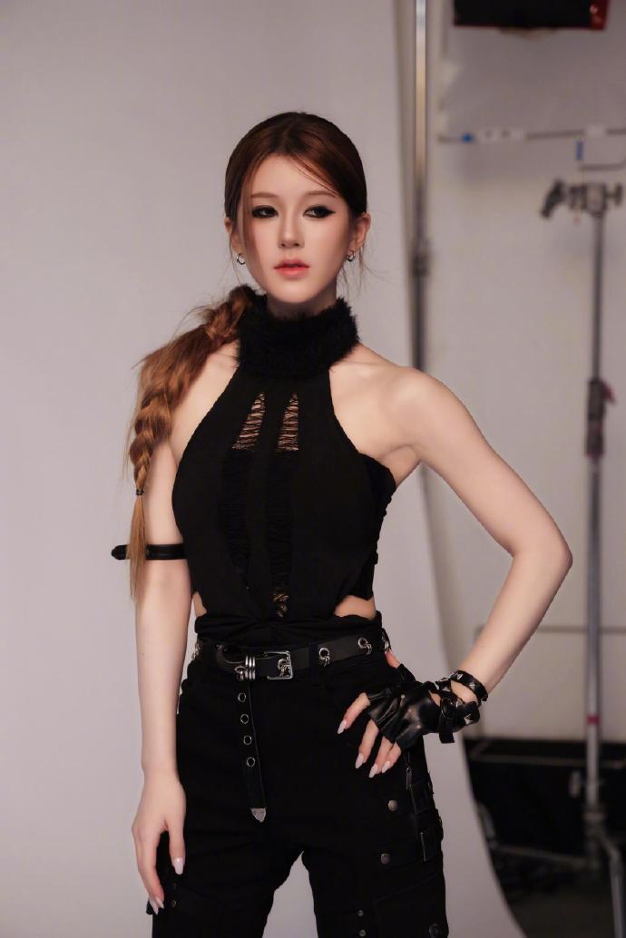 赵露思最新造型,暗黑特工太A了!这次直接颠覆以往甜妹风,用all black的特工装搭配烟熏,冷冽又飒爽,黑色挂脖裙配朋克紧身牛仔裤与长靴,把暗黑酷感拉满,实在是太帅了