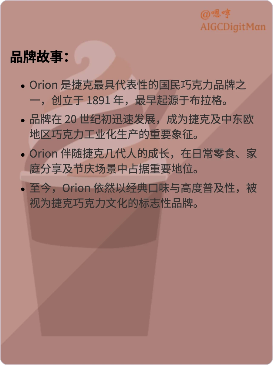 至今,Orion 依然以经典口味与高度普及性,被视为捷克巧克力文化的标志性品牌。