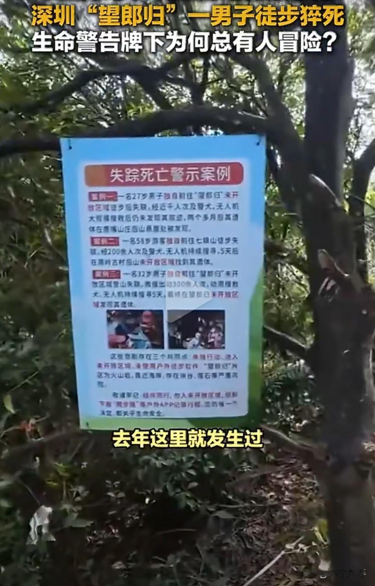 望郎归望郎归,母盼归媳盼归子盼归!郎何时才能归? 26年1月11日,一名约40岁男子在深圳大鹏半岛[望郎归]未开放区域徒步时突发意外摔倒身亡,这是此网红打野景点近五个月内发生的第五起人员遇难事故🫢🙏 根据媒体的信息该名故去的男子,在徒步下山途中踩到碎石滑倒,头部直接撞击岩石当场昏迷。一同前往游玩的人讲述他曾在14年前曾接受心脏手术,这次游玩又没有穿具有防滑功能的登山鞋,加上事发地丁心湖附近地形陡峭。虽经现场人员心肺复苏及救援队施救,但因地形险峻、专业救援无法及时抵达,最终抢救无效死亡。法医初步判断死因为猝死(估计因心脏病发晕倒后撞击头部)。 深圳大鹏半岛的“望郎归”因绝美的海景和日落成为网红打卡地,可谁也没想到,这片看似迷人的山地在短短五个月里接连夺走五条生命。(过去5个月该区域已致5人死亡25.8.10:27岁蔡某(迷路坠崖)|9.6:58岁魏某(失足坠崖)|10.16:32岁钟某军(心率异常)|12.4:约30岁男子(独行坠亡)|2026.1.11:本次40岁男子(心脏病发)) 这些遇难者里有年轻的小伙子,也有年长的游客,他们闯入这片禁区。有人登顶后失联,搜救了两个多月才在离步道不远的悬崖下找到遗体,有人失联五天后在海边被发现,失联前身体已经发出了极度透支的信号。还有一位台湾游客,短短几天就不幸殒命,警方排除了刑事案件的可能。 “望郎归”的地形危险远超出普通人的想象,这里没有成形的道路,到处是陡峭的山坡和悬崖,火山岩形成的礁石湿滑难行,岔路多到让人眼花缭乱,稍不留意就会迷路。手机信号在这里大部分时候都形同虚设,就算动用无人机热成像搜救,也会被浓密的植被挡住,很难发现被困人员的踪迹。 这些悲剧的发生,固然有地形复杂的客观原因,但更多是人为疏忽造成的。很多游玩的人被社交媒体上的网红攻略误导,觉得这条路线难度不大,却不知道那些美化后的内容背后,根本没提及隐藏着的风险。23年到现在,公园管理处已经参与了两百多起救援,大部分都是因为游客擅闯未开放区域引发的。公园在发生多起事故后发布了紧急警示,明确这里不是普通的市政公园,而是地形复杂的自然保护地,严禁擅自进入未开放区域。 其实户外徒步的意义,从来不是冒险打卡,而是安全归来。这几起悲剧不是偶然,而是对规则和自然缺乏敬畏的必然结果。大自然的壮美值得欣赏,但更需要心存敬畏。望郎归传说 望郎归