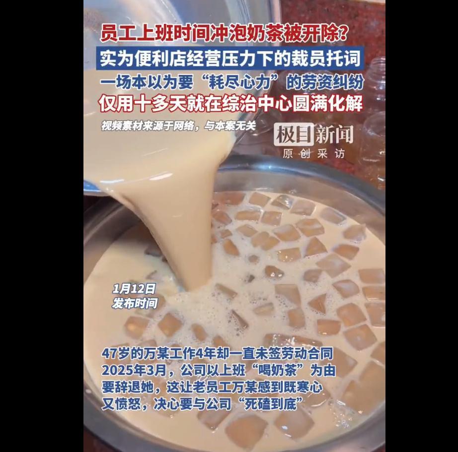 南京一家公司的47岁女文员,因为在工位上冲了一杯速溶奶茶,被领导当场撞见,当天就收到“解除劳动关系通知”,理由写着“上班期间做与工作无关的事”。消息一出,网友炸锅:有人骂公司冷血,有人嫌员工摸鱼活该,劳动仲裁已经立案,谁输谁赢还得看证据。 大姐姓张,在这家做五金配件的小公司干了十三年,平时就是录订单、接电话、跑银行,工资不高,胜在稳定。公司规定写得挺细:上班时间不准吃零食、不准串岗、不准玩手机,违反一次警告,两次就开除。张姐说,自己以前连矿泉水都放桌角,怕喝水被拍照,可那天实在太冷,空调坏了,手冻得敲不动键盘,才偷偷撕开一袋速溶奶茶,想暖暖手。杯子刚倒上热水,副总巡查路过,手机咔嚓一拍,转头就通知人事“办手续”。张姐当场懵掉:十三年的老黄牛,一杯奶茶就把饭碗砸了? 公司给出的版本更硬气:不是第一回。他们说张姐年初被警告过一次,原因是“用公司电脑给女儿打印试卷”,再加上这次“冲泡饮品”,累计两次,制度白纸黑字,按约辞退,一分不赔。张姐承认打印那事,但喊冤:“当时打印机空着,就两张纸,领导也说下不为例,没给我书面警告,怎么突然算前科?”更让她咽不下的是,隔壁小伙子上班戴耳机打游戏被抓住,只是口头批评;自己冲杯奶茶就连补偿金都没有,她觉得就是岁数大了,公司想换人,抓她开刀。 她把仲裁申请书递上去,要求认定“违法解除”,索赔赔偿金外加未休年假工资,一共七万多。律师看了材料,说胜算五五开:公司若能拿出第一次的“书面警告+本人签字”,那解除就合法;拿不出,就是秋后算账,得赔。张姐翻遍抽屉,只找到一张当时领导手写的小纸条:“下次注意”,没有盖章,也没有她签字。小道消息传出来,人事部正在补记录,员工们悄悄建了个群,有人支持她去刚到底,也有人劝她“拿点遣散费算了”,毕竟快五十岁,再找工作难。 网上吵得更凶。一派说“公司无情”,十三年老员工,没有功劳也有苦劳,一杯奶茶就扫地出门,寒心;另一派说“制度就是制度”,如果今天放过奶茶,明天就敢吃火锅,团队还怎么带?中立网友给出主意:冲奶茶可以,去茶水间啊;公司想裁员也行,按劳动法给钱,别拿规章当抠门借口。眼看仲裁开庭日子临近,张姐每天把材料背得滚瓜烂熟,她说不是为了七万块,是为了那口气——“我手脚还利索,脑子也不糊涂,就想问一句:到底多大错,才配得上十三年归零?” 事情发酵后,公司悄悄把“禁止冲泡热饮”写进员工手册,还配上图片:一杯冒着热气的奶茶,上面打个大红叉。大家路过公告栏都撇嘴——规矩越画越细,温度越管越冷。一杯奶茶的代价,可能是张姐的后半生,也可能是这家公司以后招人时,求职者心里多打的一个问号:去那儿上班,水都不敢多喝一口?奶茶纠纷 离职女员工 女老板开除员工 来源:极目新闻