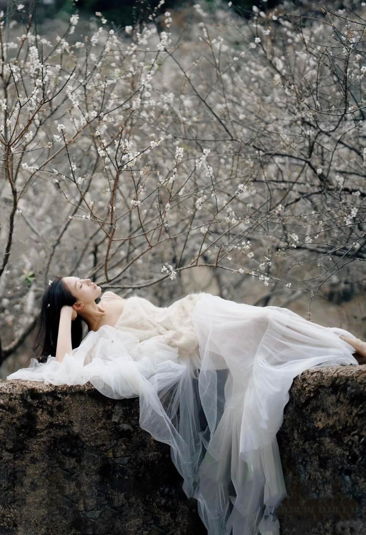 花海中,一梦幻少女,着轻盈飘逸的纱裙,与繁花相映成趣。少女侧卧于石台,陶醉的神情酷似姑姑呀!什么才是你眼里的美人