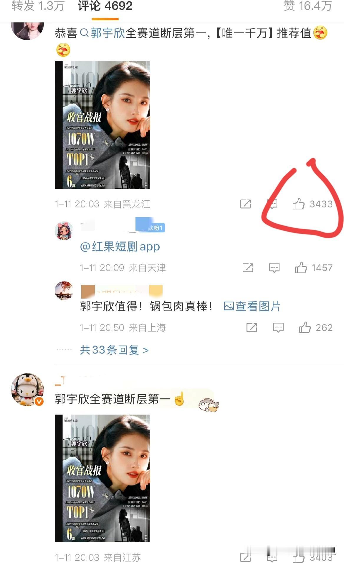 郭宇欣未来会成为周也的竞品吗? 我觉得会! 首先,年龄上算同龄🌸。 周也98年的,郭宇欣99年的。 其次,郭宇欣今年已经飞升。 参演玉簟秋,正式宣告进军长剧。 同时不放弃短剧,两手抓的规划非常不错。 长剧提升逼格,短剧能保持曝光量,增加粉丝粘性。 第三,流量对比。 郭宇欣的粉丝无论是做数据,还是购买力这块,都丝毫不差周也粉丝。 尤其购买力这块,周也的粉丝不一定打得过。
