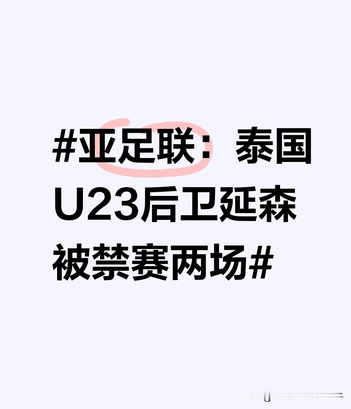 亚足联:泰国U23后卫延森被禁赛两场 亚足联这罚单来得挺及时啊!泰国U23后卫延森因为在对阵澳大利亚的比赛里严重犯规,被禁赛两场,还得交1000美元罚款。1月8日首轮比赛,开场第10或11分钟他就飞踹对手小腿,直接被红牌罚下。这禁赛两场,包括自动停赛一场和追加的一场,他也就无缘1月14日和中国U23的比赛了。 而且巧的是,泰国前锋他那武·朴猜在和伊拉克比赛中累计两张黄牌,对战中国U23也得自动停赛。泰国U23队这还没和中国队过招,就折了两员大将,这场比赛更有看头了!