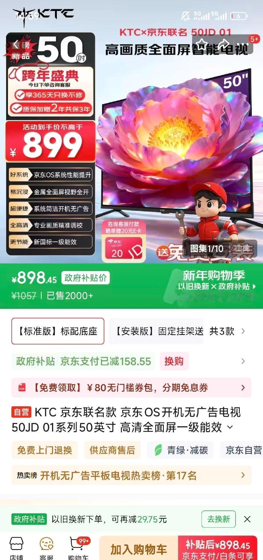 KTC真是千元内电视机的价格屠夫啊! 千元内的电视机,50英寸,金属全面屏,超薄,质感性能绝佳;我是知道它家是专业做显示器的,性能参数特别卷,质价比极高。家里买过一台KTC的电竞显示器,画质显示效果非常不错, 这电视不仅包送货,还包安装,售后竟然有3年,一般厂家都只有1年,真的太卷了。 看参数也很能打,开机没有广告;支持手机投屏;接口齐全,支持连ps5、switch;1670万色彩度。我对比过创X,T家的电视机,这个价位的电视机都比不过KTC这款。千元档50英寸内这个参数可以说无敌了。