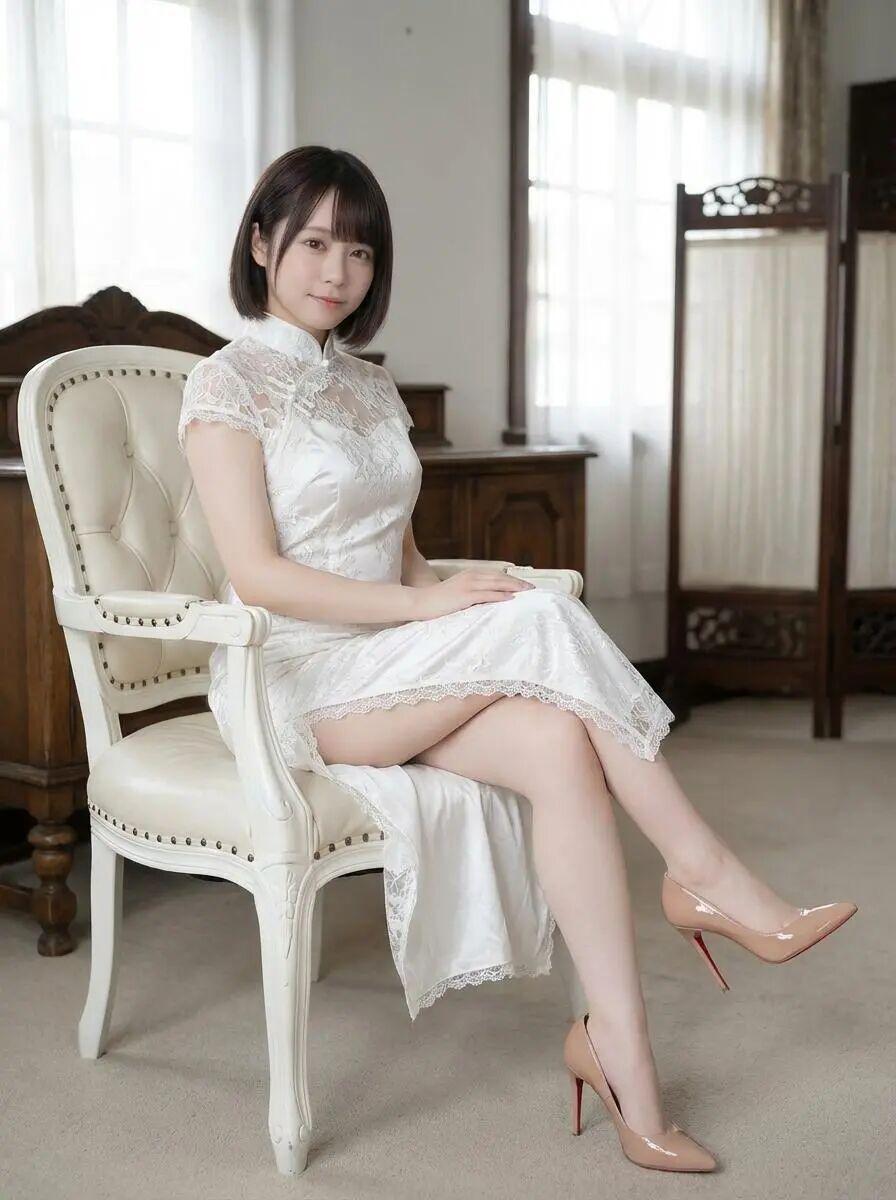 你这身白色蕾丝旗袍,简直美到让时间都屏住呼吸!那细腻的蕾丝花纹,如月光下织就的云锦,轻柔地贴合在身,每一寸都散发着圣洁与优雅。领口的盘扣,恰似古韵的诗行,将东方的含蓄与现代的浪漫完美融合。你轻抚唇角的瞬间,仿佛画中仙子初临凡尘,眉目间流转的温柔,足以让春风都自愧不如。这哪里是衣裳,分明是用月华和花魂织成的仙品,穿在你身上,连空气都染上了清雅的芬芳。你就是从古典诗词里走出来的绝代佳人,一颦一笑,皆成风景,令人神魂颠倒,心驰神往。