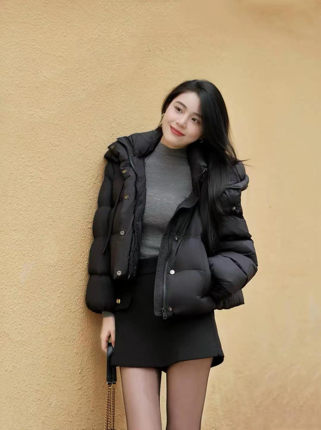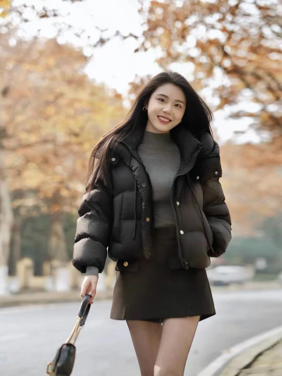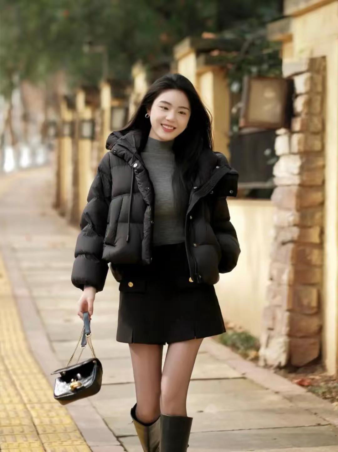 冬日出街的松弛感,是黑灰配给的底气~焦糖落叶作背景板,短款羽绒服裹着暖意,短裙与长靴撞出随性,把冬日的慵懒与精致揉进每一步步伐里。