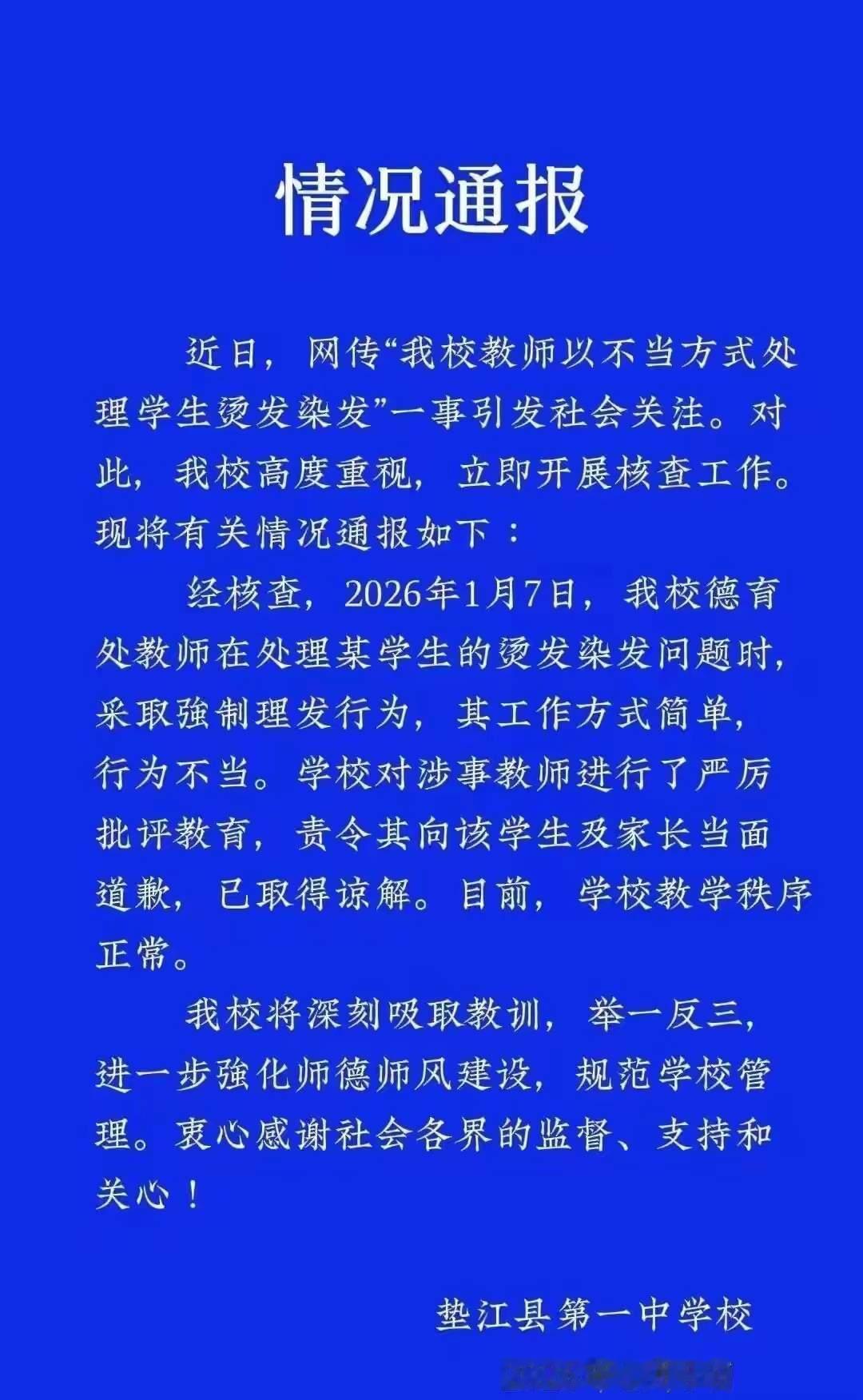 学生首先是一个人,一个有尊严、有受正常教育权力的人。 在这个瞬息万变的社会,学校不仅仅是传授知识的地方,更是塑造品格和价值观的摇篮。而今天,我们却看到这样一幕:一个学生,被老师粗暴对待,甚至被按在地上强制剪发。这不仅仅是一次“操作”的失误,更是一场对教育本质的严重背离。 学生首先是一个有尊严、有受正常教育权利的人。这不是一句空洞的口号,而是最基本的人性尊重。作为老师,责任不仅仅是传授知识,更是引导、激励,帮助学生成为有责任感、有品德的人。而不是变成“执法者”,用粗暴的手段“矫正”学生的行为。这样的行为,让人不禁怀疑:我们是不是还在用“暴力”去解决“问题”?是不是把“管教”变成了“管杀”? 更让人痛心的是,这样的行为可能会在无形中树立一个危险的榜样。未成年的学生看在眼里,可能会误以为“强制”就是解决问题的唯一途径。长此以往,他们是否会学会用暴力应对冲突?是否会觉得,遇到困难时,唯一的办法就是用“强硬”来解决?这对他们的未来,无疑是一种扭曲的教育。 我们要问的是:为什么偏偏要用如此粗暴的方式?难道沟通和理解就那么难吗?学校教育的核心,难道只是“管”与“控”?其实,很多问题都可以用理性和耐心去解决。老师完全可以用温和的语言去引导学生,用理解去化解矛盾。这不仅能保护学生的尊严,更能培养他们的理性思维和情感认知。 我们呼吁每一位教育者:请用心去感受学生的心灵,用智慧去引导他们成长。学校应该是温暖的港湾,而不是冷酷的战场。每一个学生都值得被尊重,每一个孩子都应该在充满爱与理解的环境中成长。 如果我们不能从这些“微不足道”的细节中反思,也许未来的社会会变得更加冰冷、更加缺乏人情味。教育的本质,是引领而不是强制,是理解而不是压制。让我们共同努力,呼唤那些还在用粗暴方式“管理”的老师们,记住:真正的教育,是用爱心点燃希望,用耐心浇灌未来。
