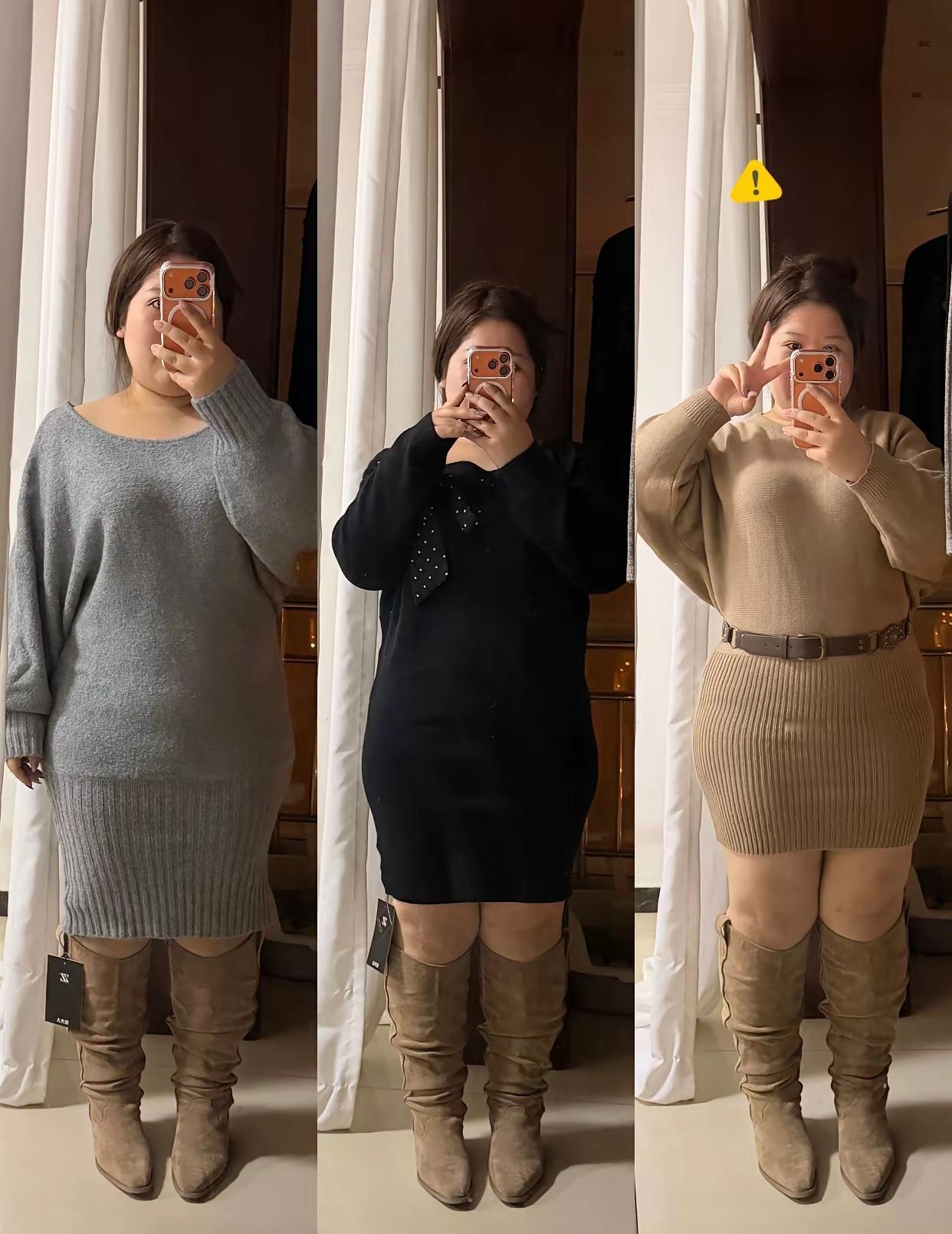 好纠结!在网上买了三件长款毛线衣,打算回家过年相亲穿,试来试去,试了大半天,不知该留下哪一件比较好。 友友们帮看看,三个颜色,到底穿哪件比较有气质一点,给点意见,谢谢![祈祷]