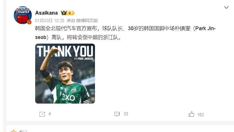 💥“钱要花在刀刃上,精明引援才是王道!”浙江队800万签韩国队长,是神操作还是冒险局?🤔浙江队炒教练、送走李提香,却砸800万拿下全北现代队长朴镇燮,这是要跟海港、泰山掰手腕,还是中超“金元足球”又回来了?💸朴镇燮后腰中卫都能踢,1米86拦截凶狠,头球远射俱佳,后场出球也强,正好补浙江队后防短板,提升攻防转换流畅度。💪中超太多队盲目追大牌,结果钱花了成绩差。浙江队务实引援,用白菜价签下世界级水平球员,这才是真本事!新赛季,浙江队能否靠他冲击冠军?拭目以待!👀你觉得浙江队这笔签约值吗?评论区聊聊!💬