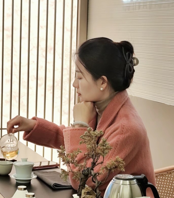 54岁的黎姿,在自家价值数十亿的半山豪宅露台吃下午茶,穿着一件白色衬衫,搭配格子