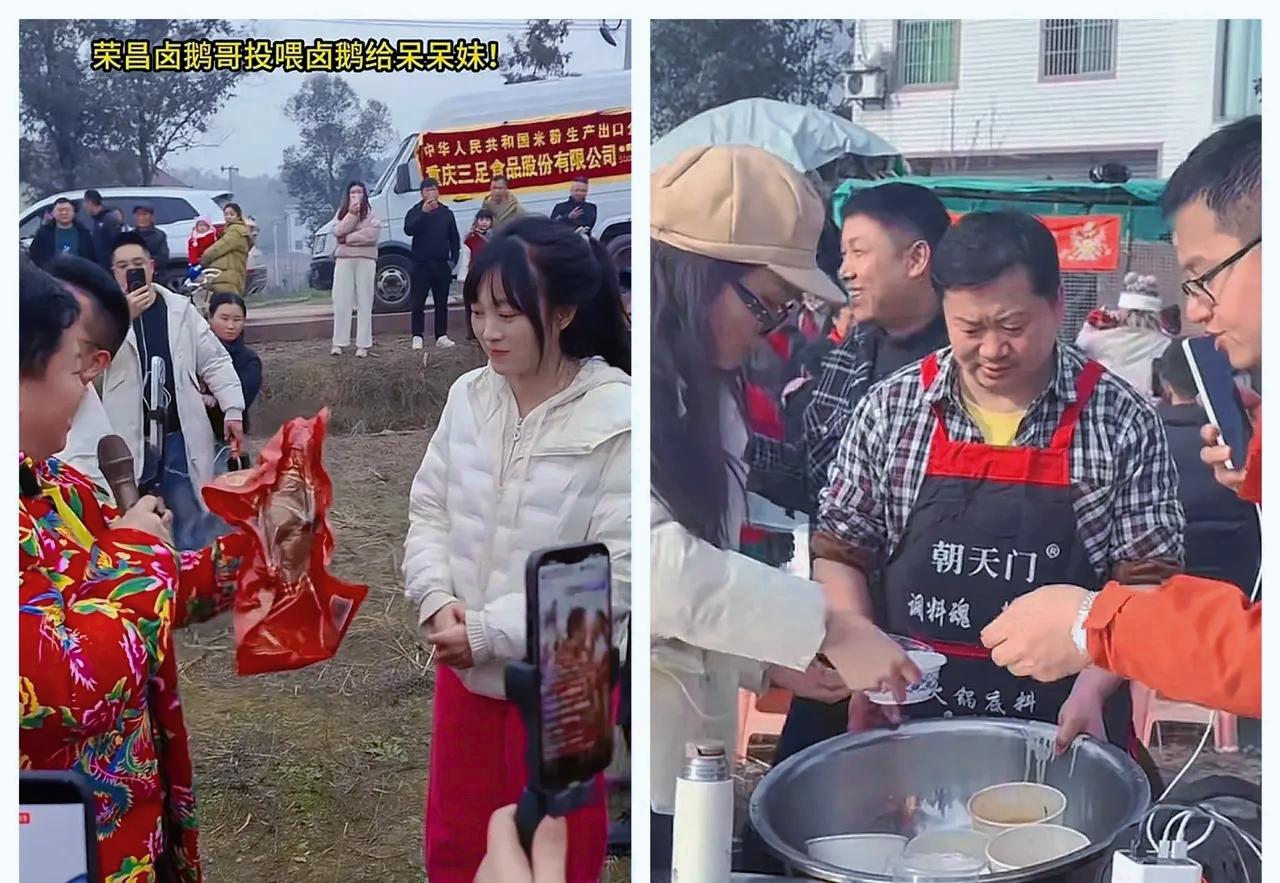 卤鹅哥给网红们上了一课: 蹭流量可以, 但本职实事一件不能落。 他去呆呆家杀猪宴, 没跟风摆拍直播, 先推荐荣昌卤鹅, 便主动忙前忙后, 下厨、擦桌、搬凳、待客样样实干, 忙到天黑才走, 全程没发一条视频, 这样的网红才值得尊重, 也能走得长远。