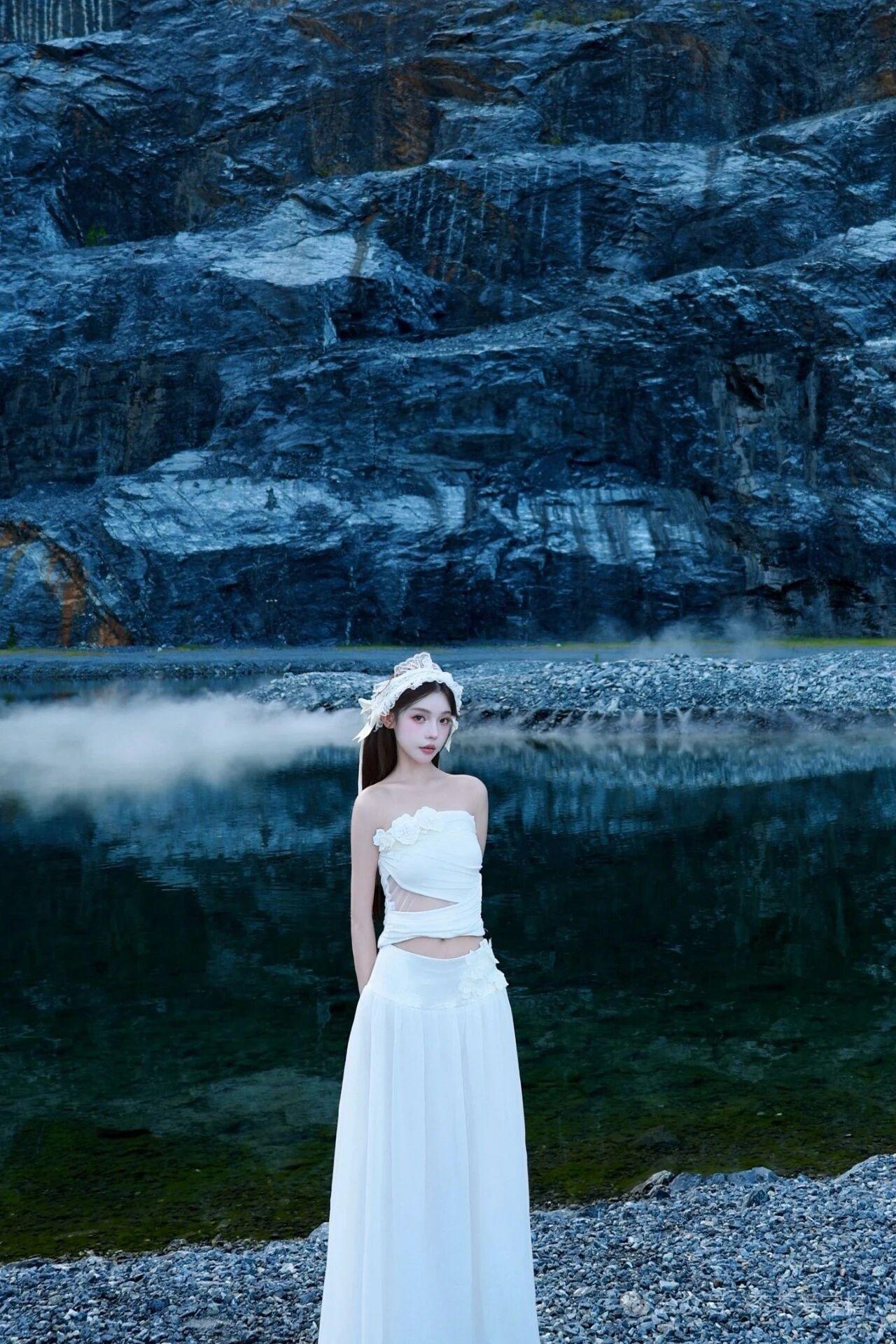 晒图笔记大赛夕阳西下,夜幕降临,你就像一朵洁白的雪莲花,熠熠生辉,光彩照人!高雅气质美女 冬日生活打卡季