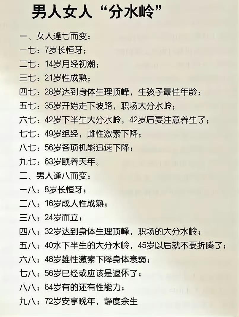 男人女人“分水岭”:揭秘不同年龄阶段的生理变化。 内心不老,人就不会老,有时候不要被外在因素影响。