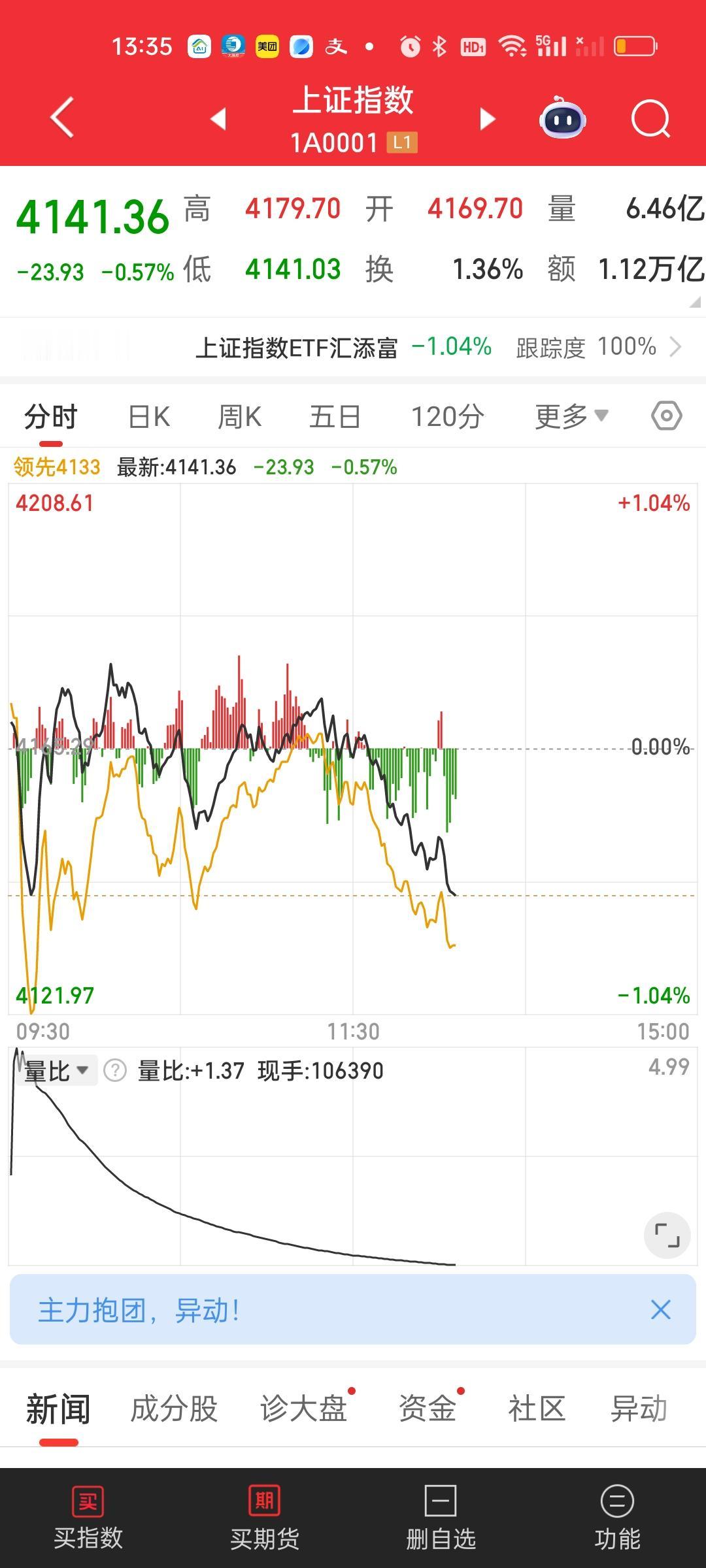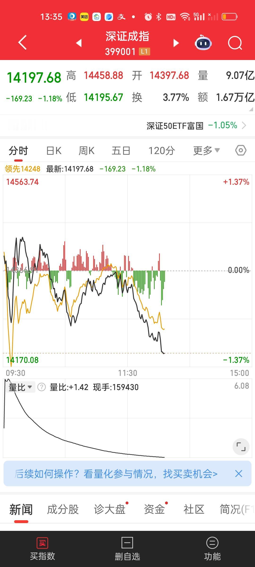 又是短时间内超过30个点的急速下杀,下跌家数已经超过了3500家,今天可能破两个记录,大盘成交量最快到3万亿的记录,可能13:55之前就能达到。另一个,大盘资金净流出可能超过2500亿。今天的分化比昨天还要明显,说到底下跌家数明显增多,跌停家数明显增多,但是也有利好,居民存款到期的量越来越多,从这个角度讲可能会有无限子弹供应,并不意味着一定会下跌,也有可能尾盘就拉上去了,取决于这部分增量资金的态度!