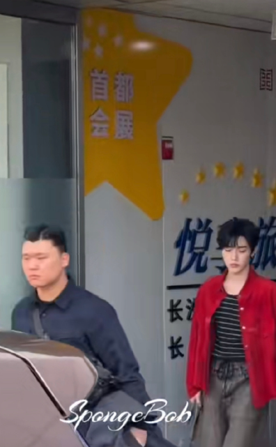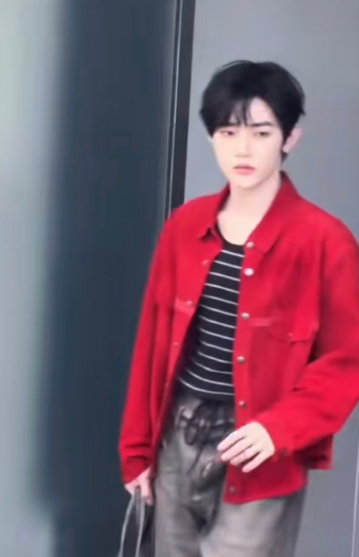 章昊你好星期六录制上班路透,身穿红衬衫,真的好喜庆啊!