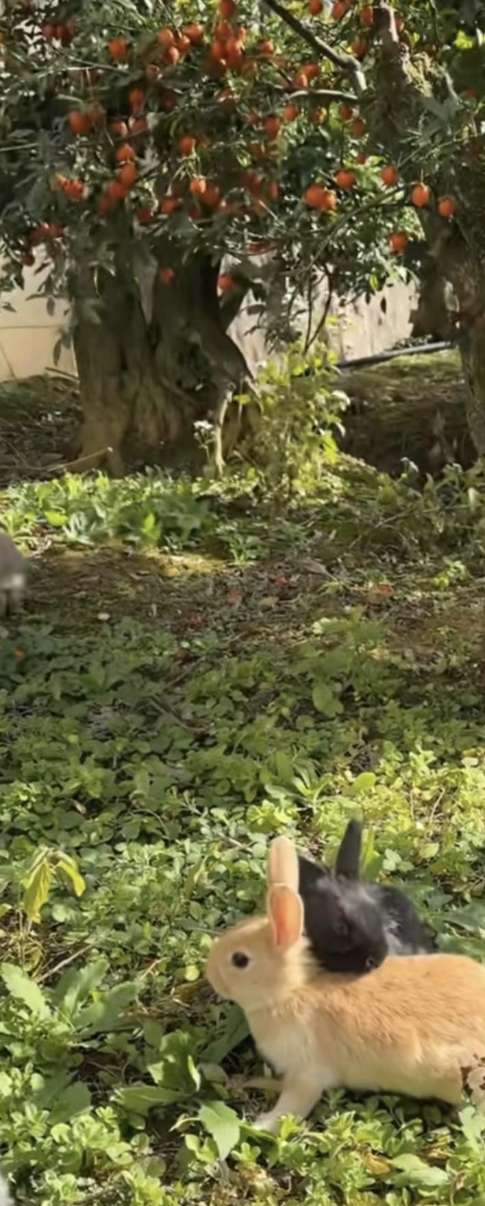 兔子在橘子树下玩了森林里的小兔子 好可爱