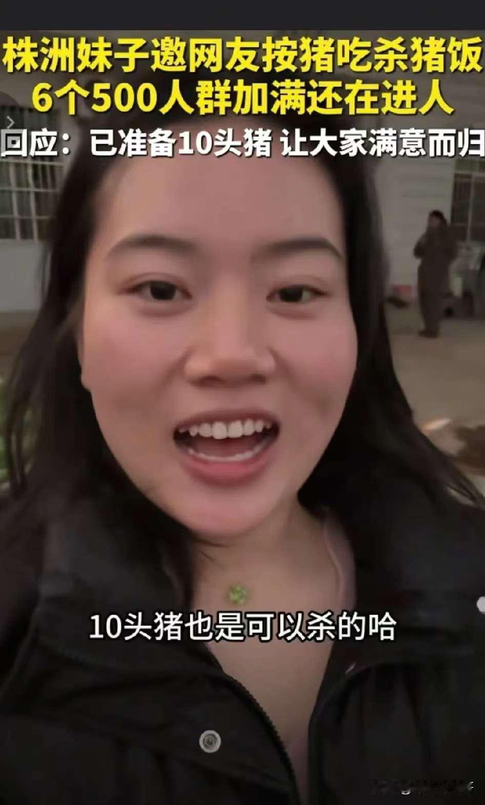 谁也没有想到2026年的欢乐喜庆会从“按猪宴”这个点爆发! 继重庆合川的呆呆姑娘因网上请人帮忙按猪、请吃刨汤饭而成为2026年网上第一个闯了“大祸”的人后,向来在娱乐方面从不落后的湖南人,立马就进行了跟进,株洲的灿灿姑娘又整出了一个升级版的请人帮忙按猪、请吃杀猪饭。家里没矿,但家里是真有猪,十条猪已经备好,1月18号准时斩立决…… 还别说,尽管大家都知道这是一场超级模仿秀,但这种江湖令一经发出,效果依然直接拉满,报名去灿灿家按猪的网友迅速达到几千人。灿灿这边也是吸取了呆呆那边的经验教训,避免到时候海量人流蜂拥而至让自己无所适从,跟相关部门报备,准备场地、厨师、餐桌、网络等等。 大家可能对这种事情不太理解。比如有些人就会说,这种自娱自乐的聚会都是一些什么去参加呢?正常人不都得上班吗?没错!确实搞这事和参加这事的人大多都是闲得慌的人,甚至很多人就是奔着互联网的流量去的。但我依然觉得这是一件好事。 我并不是在发什么牢骚,而是呼吁大家仔细去思考一下我们的民生状况。 我们一直被灌输,要努力工作、努力赚钱,要卯足劲地往前冲,这些也许没有错。可是在名利场中浸泡久了的人通常会失去人世间最珍贵的人情味,会忘记来时的路,会遗失很多简单的快乐…… 现在,大的经济形势很严峻,很多人把自己比作牛马,不敢乱说话、不敢乱开销,一个个把自己的神经紧绷得跟拉满的弓弦一样,长此以往,真的会出问题的。 我觉得,这种老百姓的自娱自乐是应该支持的,社会的高压锅是可以适度放放气的。 有很多时候,我一直在讲,生活很艰辛,现实很残酷,所以我们每个人都应该更加懂得如何去取悦自己。 为什么一定要让自己和别人活在冰冷的世界里呢? 也许有很多人会说,这是博取流量、哗众取宠,那又有什么关系呢?只要他们不给社会和谐增加难度和成本,不整出一些负面效应来,那不就可以了。 社会底层的经济流动起来,这才是硬道理!