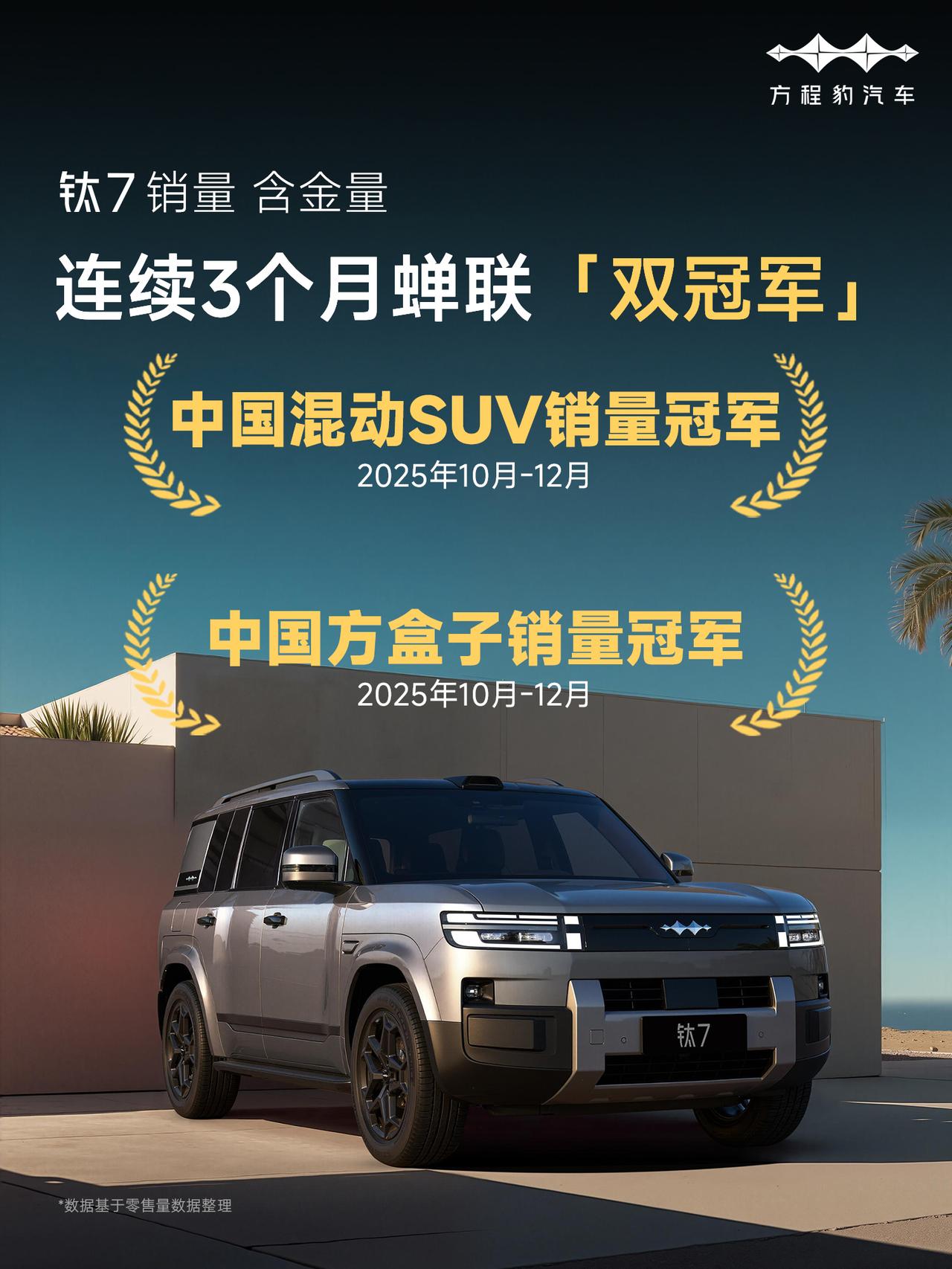 方程豹钛7连续4个月交付超3万,连续3个月蝉联中国混动SUV销量冠军和中国方盒子销量冠军,单一车型能做到这个成绩真是厉害了。 钛7有四个车型可选,135km两驱 Pro 版(17.98万元)、200km两驱 Max 版(18.98万元)、190km四驱 Max 版(20.68万元)、190km四驱 Ultra 版(21.98万元),四驱版反而更受欢迎👏🏻