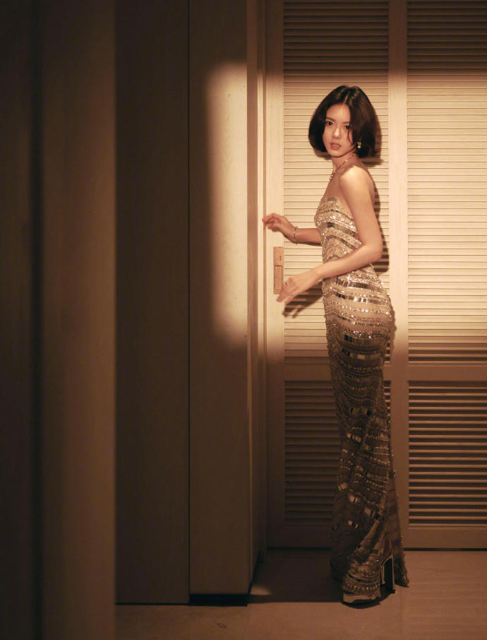 赵今麦完全女王来的,亮相活动造型大片,身着银色抹胸亮片长裙,利落短发佩戴全套高级珠宝。像把银河穿在身上,一颦一笑都耀眼夺目,状态超级好