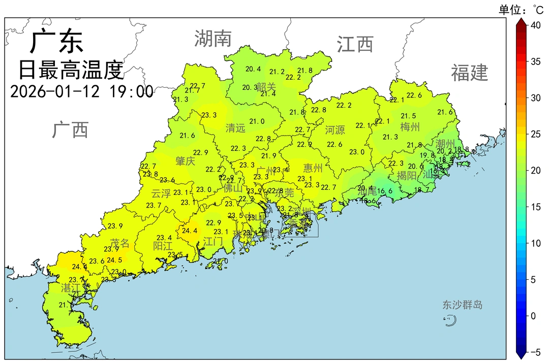 预估,从1月13号(周二)开始,影响广东的冷空气实力很弱,气温迎来稳步回升,尤其是白天,由于晴天,阳光加持,白天中午天气相当温暖,在本周六(17号)之前,气温将以2~3度每天的速度回升,到了周五(16号),最高温剑指26度,本周末将剑指28度🔥。本周末天气相当好,适合出行。
