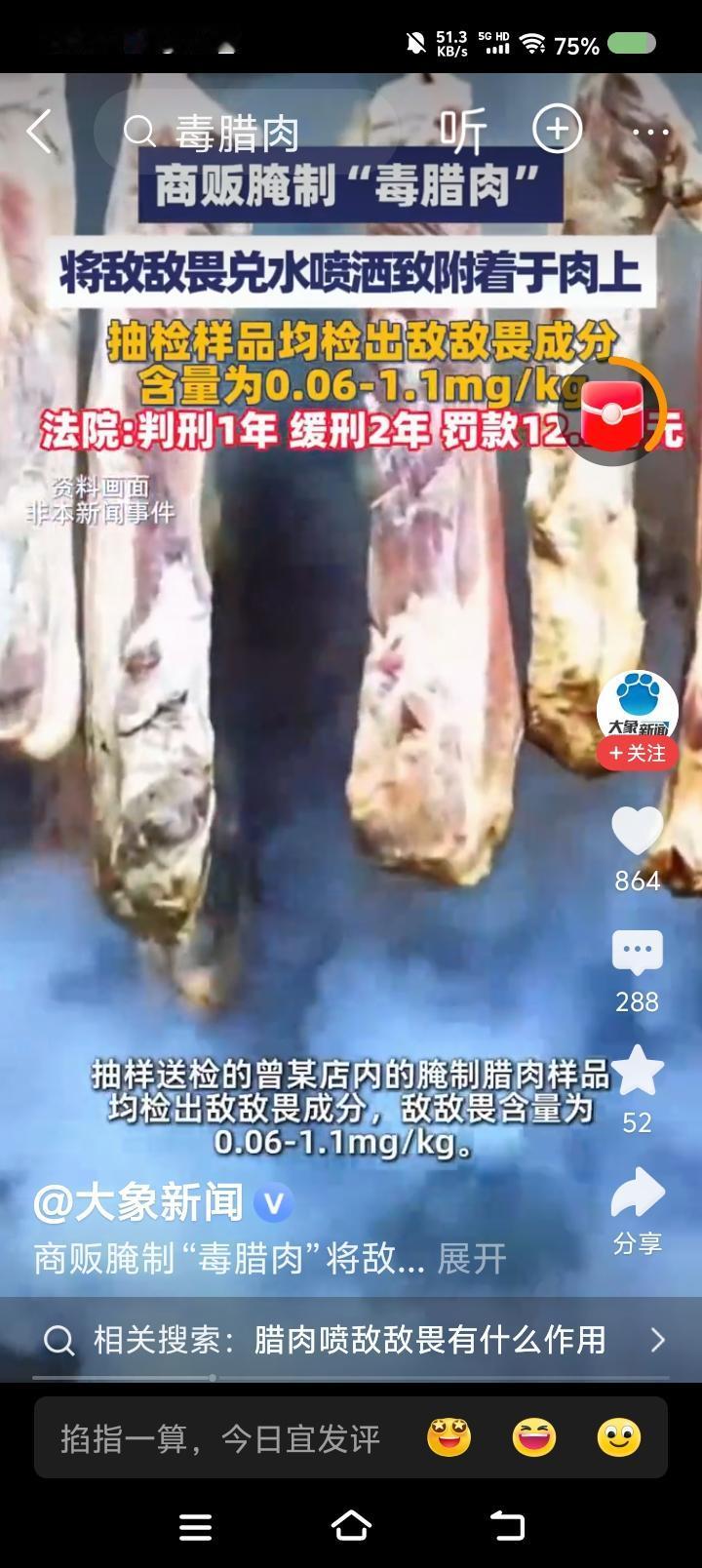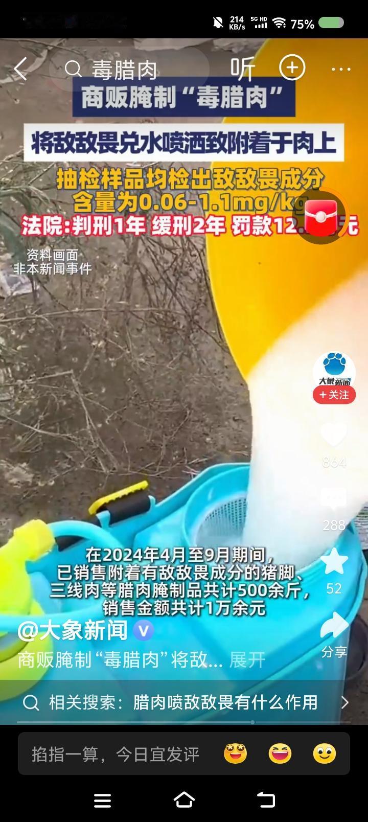 毒奶粉事件的后遗症?—— 据报道,有人将敌敌畏兑水喷洒在腊肉店铺内,导致食物检出敌敌畏成分。判刑1年,缓刑2年。 点评: 毒奶粉厂家的负责人怎么样了?产生后遗症了? 为什么不少人觉得我国对食品安全的违法犯罪处罚这么轻?