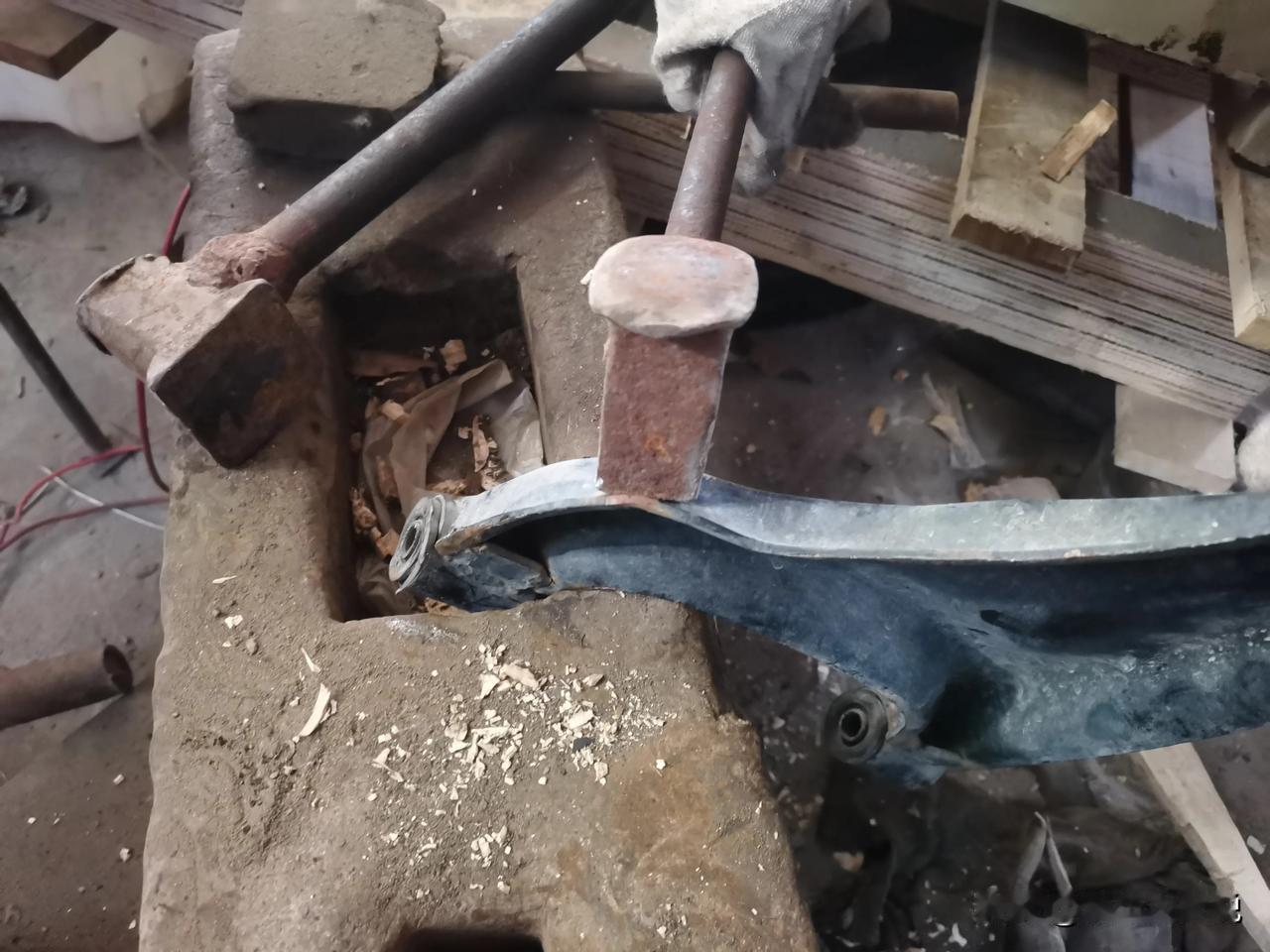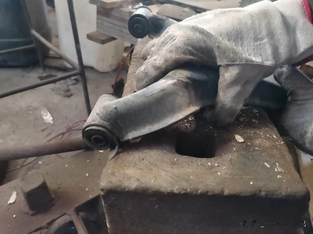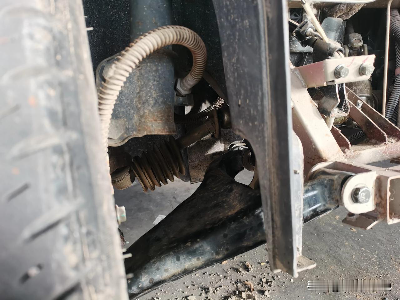 大阳巧客四轮车,右前轮撞面包车上了,下支臂直接撞成麻花,拆下来大小锤一通砸,基本上复原了。 为啥不换新的?主要是觉得没必要。因为撞击后不仅是下支臂变形了,车架子也有变形。众所周知悬挂上各个零件的配合尺寸差一点点都会影响四轮定位的精准度,所以要想恢复到原车状态需要的工程量太大了。拿尺子测量着,自己敲敲打打基本上都能恢复个八九不离十了。再加上这车速度也不高,即使有一点偏差影响几乎没有,修完开了一圈,实际效果非常好。