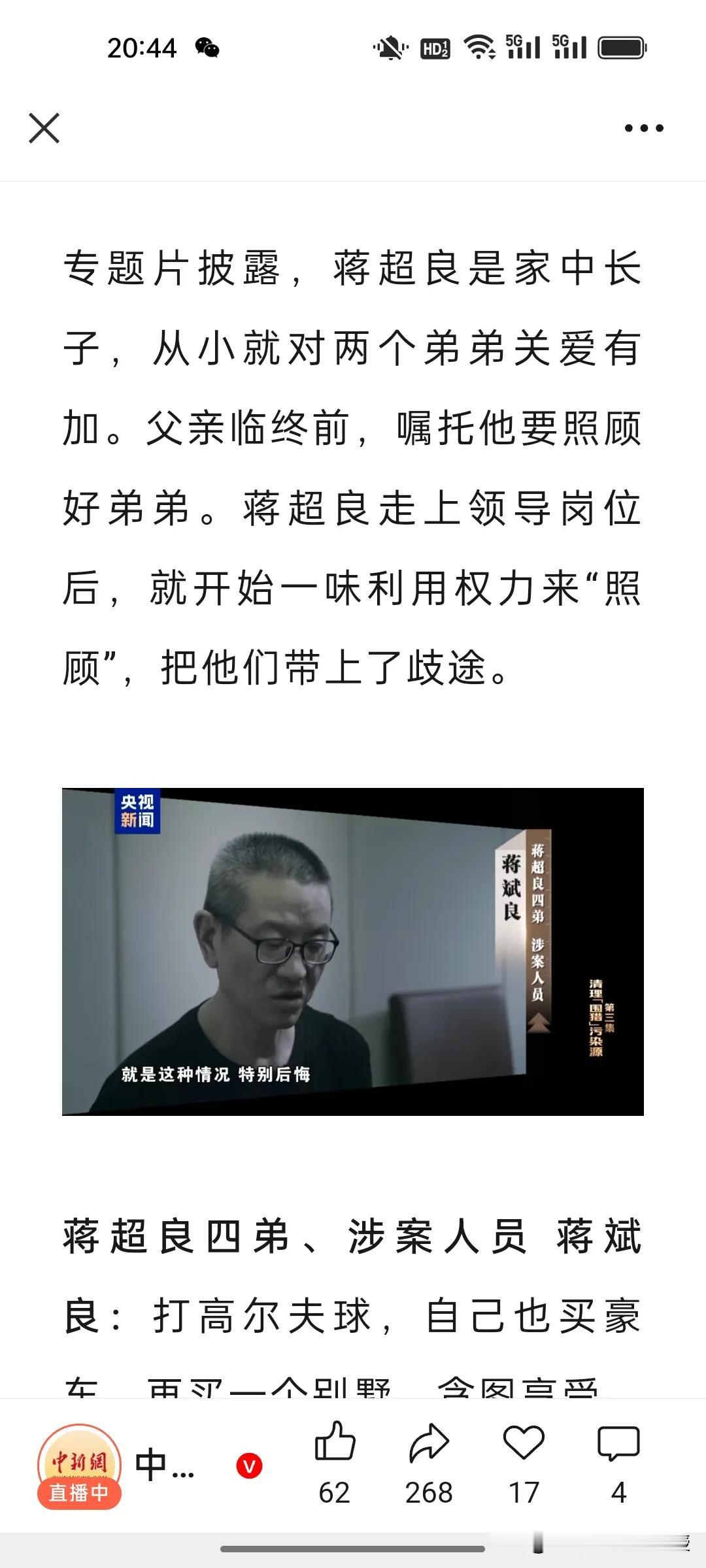 今天看了央视反腐大片第三集,对于蒋超良,大家并不陌生。蒋家三兄弟(蒋超良,蒋忠良,蒋斌良)名字带“良”行为却“恶”!蒋家三兄弟忏悔背后,三大腐败根源触目惊心! 父母赐名三兄弟姓名含“良”,蒋超良三兄弟却用贪腐践踏初心!家族式腐败的三大病根直击要害: 第一,亲情绑架沦为谋私纽带,借“照顾弟弟”之名行权力变现之实; 第二,贪欲膨胀让兄弟成利益共同体,不劳而获的奢念吞噬底线; 第三,渗透式围猎无孔不入,商人围堵家人就能轻松“拿下”权力。 重大项目审批成“摇钱树”,弟弟空手套白狼当掮客,转手获利;用人升迁沦为“交换筹码”,攀附者一年两升坐稳孝感市委书记还“知恩图报”。权力失去监督,再好的名字也抵不过内心的贪婪。唯有扎紧制度笼子,让审批透明、用人公正,才能不让“良”名变“恶”行!