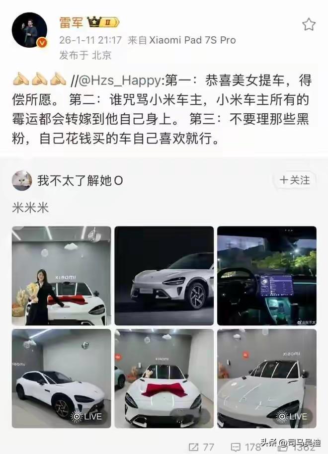 正能量满满的,雷总亲自为小米车主发声!