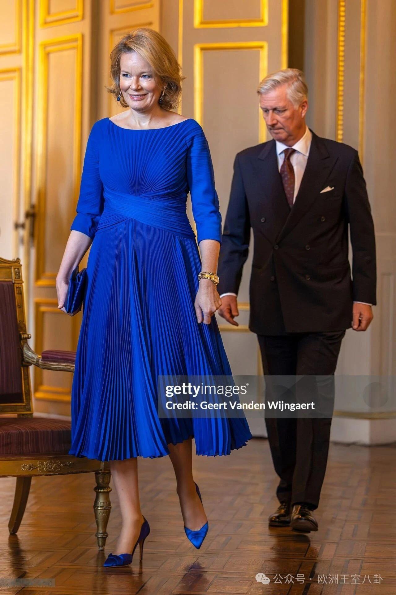 1月贵圈还在陆陆续续办接待会ing,今天是比利时王室的欧盟&其他组织专场 排排站握手环节可见从头蓝到脚的比利时王后玛蒂尔德。撇开各种荧光色不提,宝蓝色应该是最适合她的颜色,日装长礼服佳作都有不少 今天可见除了蓝裙子蓝鞋子外,还有去年下半年才出现但显然她很爱的不明蓝宝石耳环,而蓝宝石戒指则是某结婚周年礼物,原本是三石款前两年换了镶嵌,齐活~ 另外场内尬聊摆拍环节可见菲利普和玛蒂尔德的继承人大女儿伊丽莎白,细看她裙子算墨蓝吧