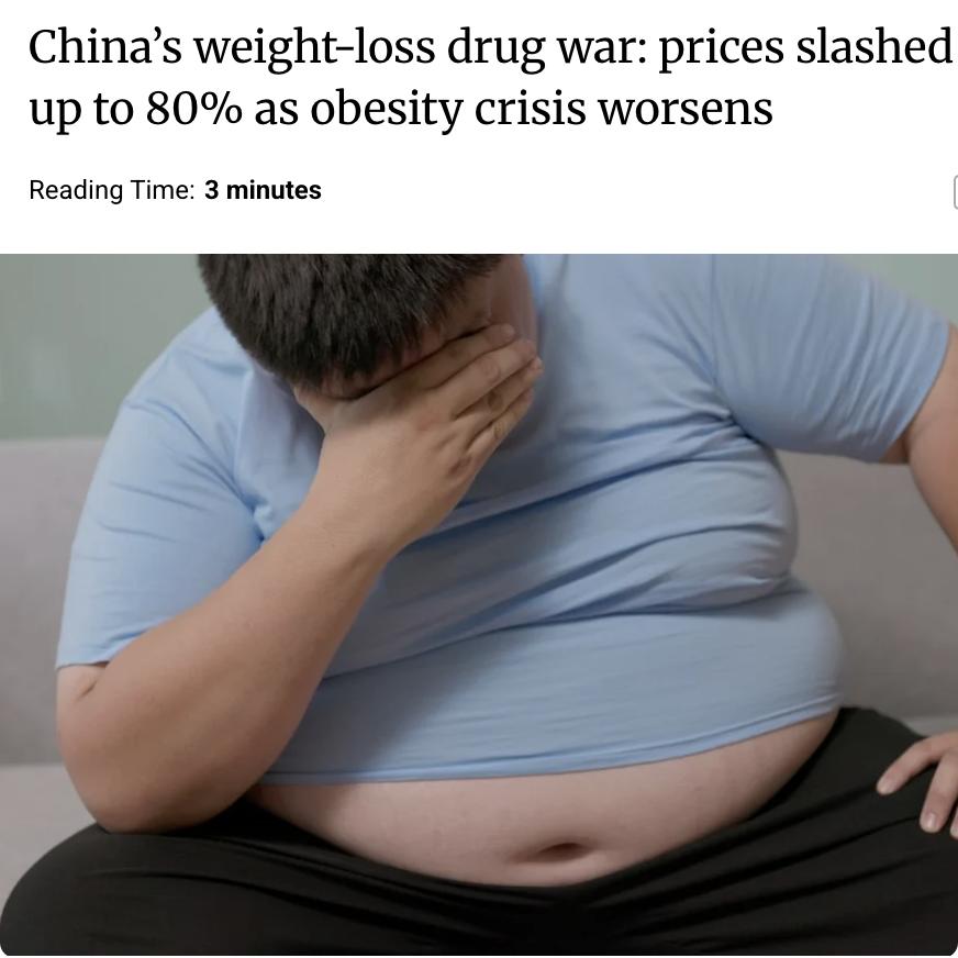 外媒:中国减肥药市场爆发价格战,药价最高暴跌80%以应对肥胖危机 随着中国肥胖