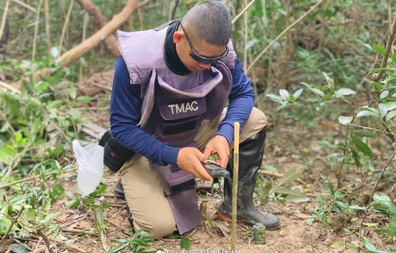 素林府泰柬边境清排完成85%】 泰国国家扫雷行动中心全力推进泰柬边境排雷作业,素林府边境地区已完成85%清理,发现爆炸物124件,成功开辟边境安全区域,恢复并增强民众的安全感与信心。 1月13日,泰国武装部队司令部通过国家扫雷行动中心,指派第4人道主义扫雷行动单位派出排雷与销毁小组,赴素林府执行排雷任务,以降低泰柬边境地区地雷及未爆弹药对人员与安全环境造成的威胁。 行动期间,第4人道主义扫雷行动单位为第263步兵营提供支援,在相关区域开展风险清除作业,为新行动基地的设立创造条件。作业共清理并开辟安全区域320平方米,期间发现1枚 TYPE-69 型反人员地雷。 与此同时,扫雷人员在素林府帕农东拉县 Bak Dai 乡 Chong Haeo 村区域展开地雷排查。该区域总面积为22634平方米,本次行动新增清理出安全区域1080平方米,占总面积的4.78%。 作业过程中共发现爆炸物4件,包括 TYPE-69 型反人员地雷2枚、MBV-78A2 型地雷1枚,以及 TYPE-67 型手榴弹1枚。行动全程由第263步兵营派出兵力执行警戒与安全防护任务。 综合行动成果显示,自2025年11月2日至今,在 Chong Haeo 村区域开展的排雷作业已累计降低风险区域并开辟安全区域19375平方米,占总面积的85.60%。目前仍有经确认存在地雷的区域3259平方米,占14.40%。 在整个任务周期内,共发现爆炸物124件,其中反人员地雷17枚,包括 TYPE-69 型15枚、POMZ-2B 型1枚、MBV-78A2 型1枚;未爆弹药(UXO)107件,包括 PG-2 型弹药1发及 TYPE-67 型手榴弹106枚。 上述行动充分体现了泰国武装部队司令部及国家扫雷行动中心持续推进人道主义排雷工作的坚定决心,有助于恢复边境地区安全秩序,增强民众信心,并为泰柬边境地区的长期安全与稳定奠定基础。