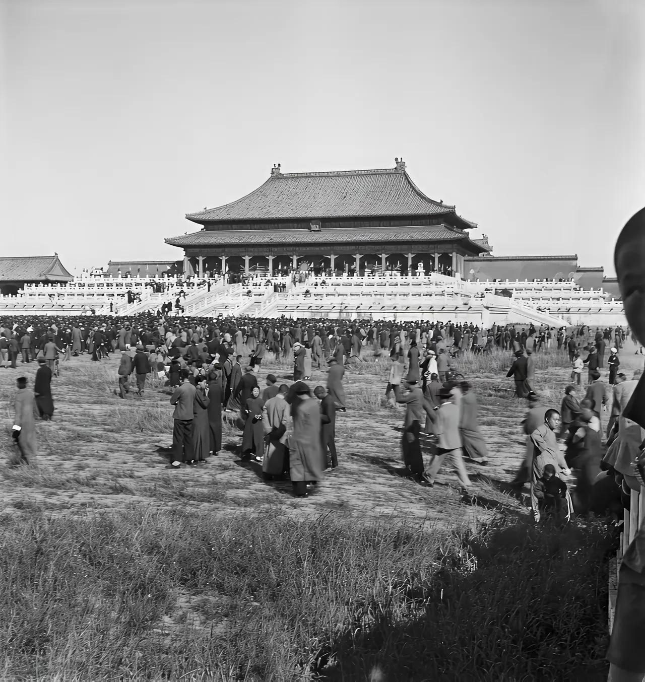 老照片回忆录:当年的故宫内荒草丛生,不过游玩的人依旧不少。古人所建的宫殿依旧巍峨屹立,仿佛在诉说着历史的变迁。 北京故宫
