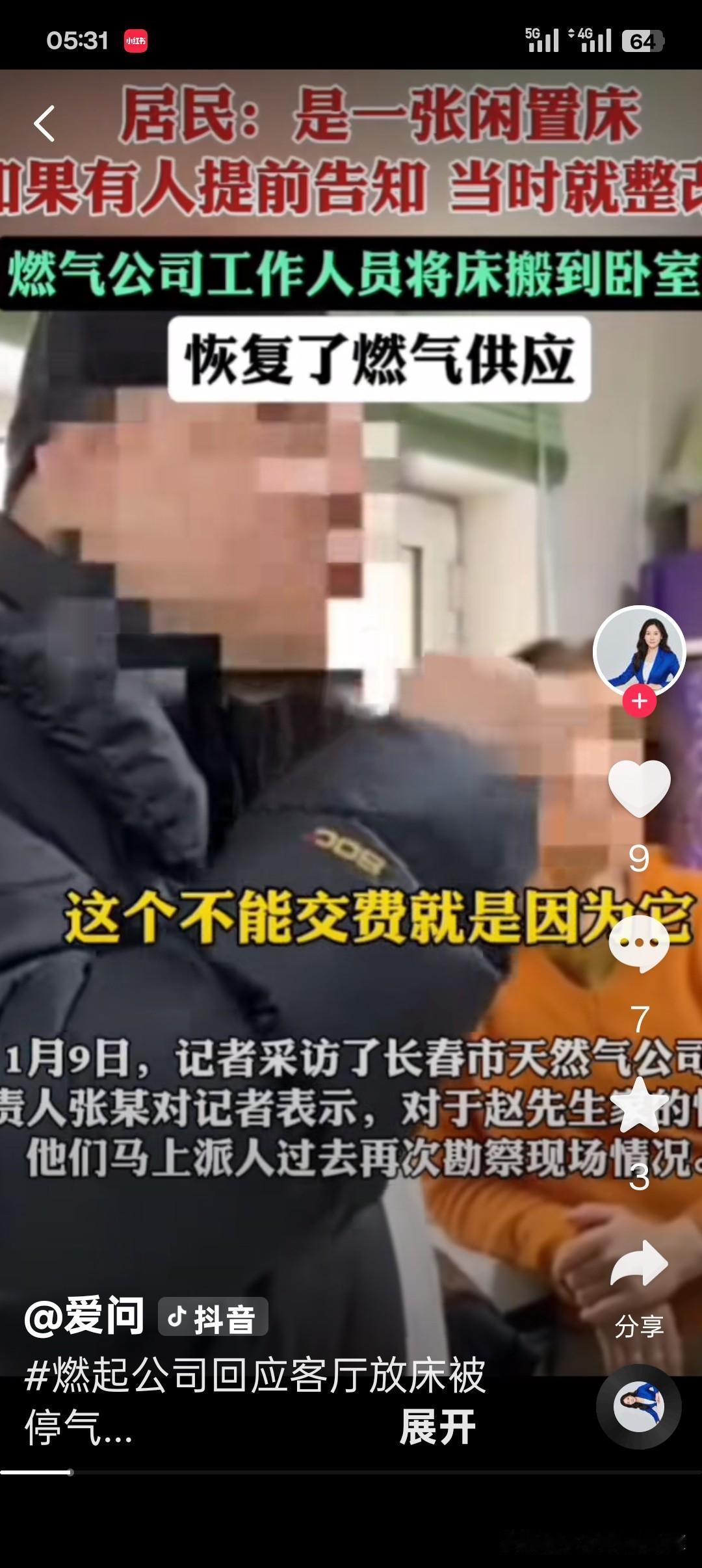 吉林长春赵先生家因开放式厨房旁的客厅摆放闲置儿童床,被天然气公司安检后贴封条停燃气近20天。 期间赵先生多次反映,称工作人员未提前告知整改要求。 1月9日记者介入后,燃气公司工作人员上门将床移至卧室,当日便恢复供气。 燃气安检本是民生保障,长春市天然气公司却搞出“一张闲置床断气20天”的荒诞操作。 依据规范排查隐患无可厚非,但工作人员拍照即走、不告整改就封停,面对用户诉求置之不理,直到媒体介入才火速解决,暴露的是服务傲慢与执法僵化。 所谓“合规”沦为刁难工具,民生需求被抛诸脑后。 公用企业手握断气权限,当以“服务+引导”为先,而非“一断了之”。 更讽刺的是,床移至卧室便符合要求,可见此前的“铁面无私”不过是教条主义作祟。 安全底线需坚守,但脱离人本关怀的监管,终究是舍本逐末。